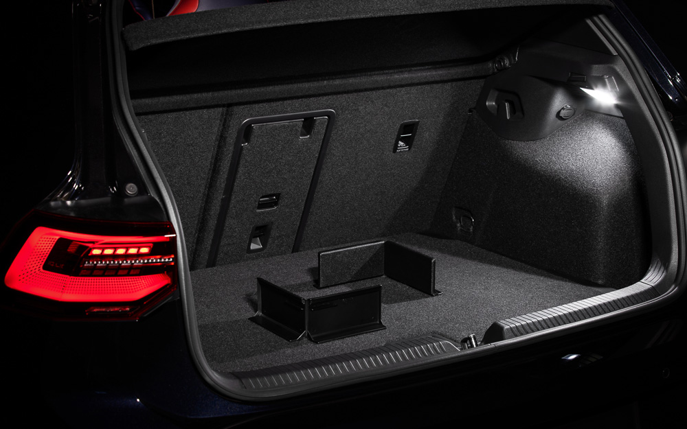 Inside, the Golf GTI Black Edition takes driving luxury to the next level. The addition of the Volkswagen Universal Traffic Recorder 2.0 (UTR2.0) ensures top-tier video recording with Sony's "Starvis" night-vision image sensor, providing ultra-crisp 2x QHD videos in all conditions, even at night. The UTR2.0 features advanced video compression and dual-band 5 GHz WiFi for quicker downloads. Cargo elements with velcro fasteners further enhance practicality by securing items of all sizes.