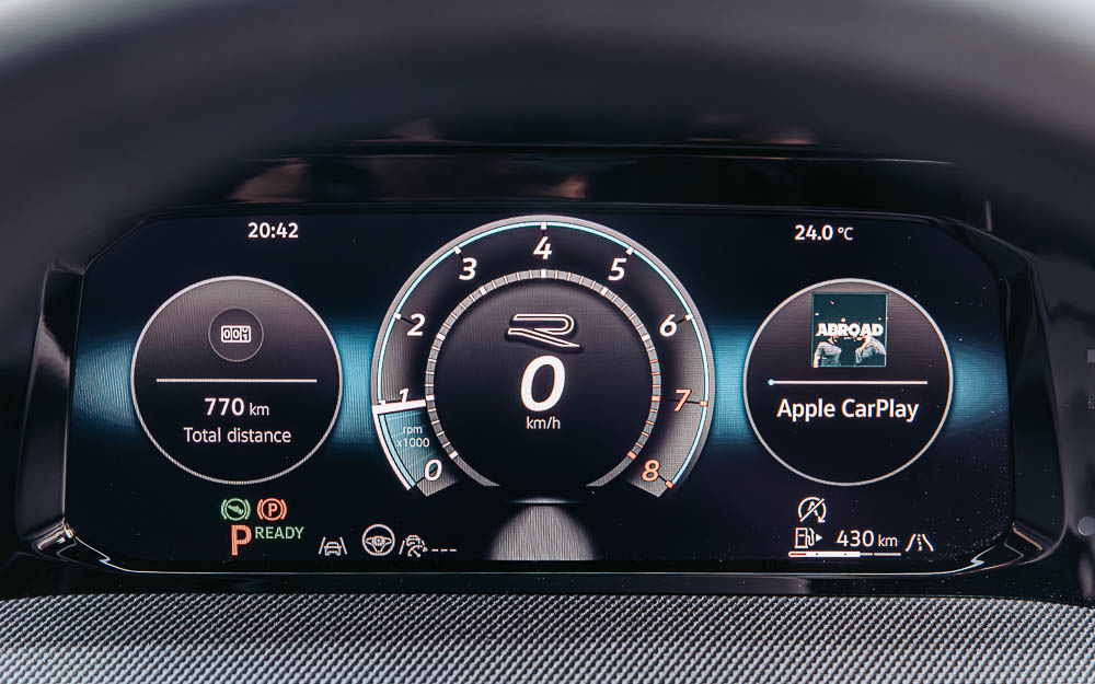 Under the hood, the Golf R-Line features a 1.5L eTSI mild-hybrid turbocharged engine, producing 150 PS and 250 Nm, paired with a 7-speed DSG transmission. It sprints from 0–100 km/h in 8.6 seconds while maintaining excellent efficiency at 5.2L/100 km.
