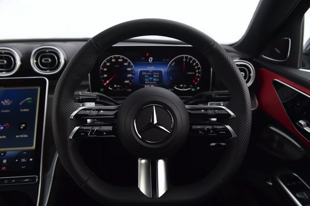 配备部份,预计 C350e 与 C300 同样标配 AMG Line 运动化套件、11.9 寸数位化仪表盘、12.3寸中控荧幕、Burmester 3D 音响系统、全景玻璃天窗、电动尾门、360 全景镜头和等等。