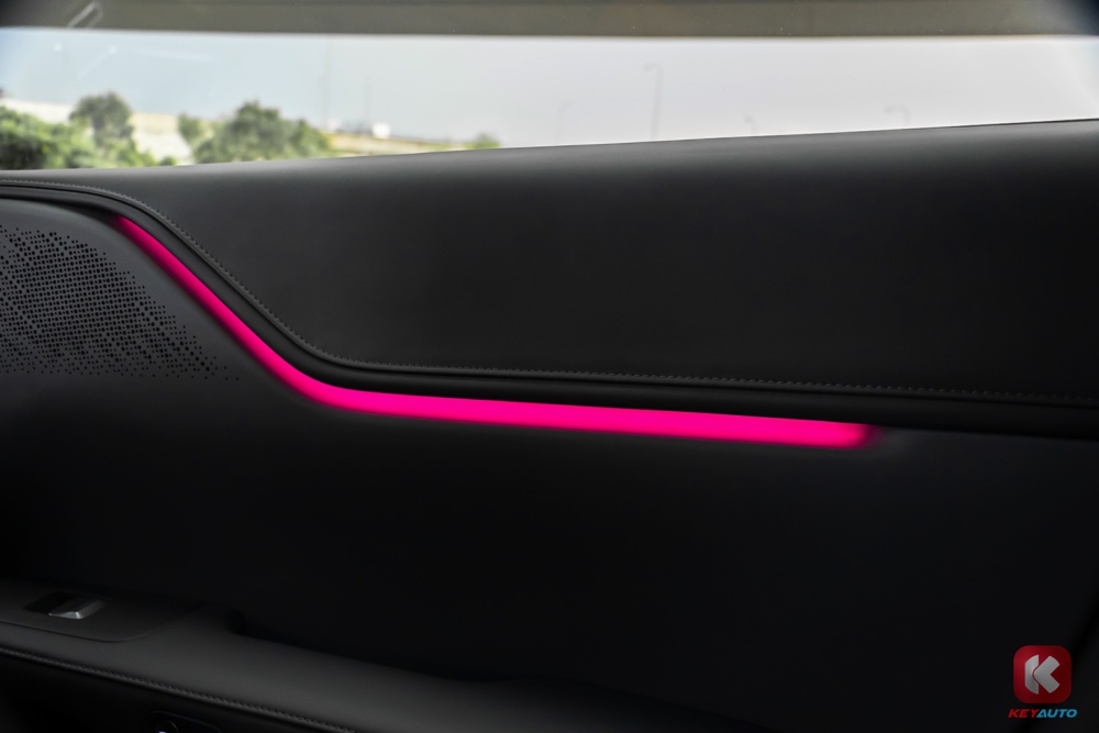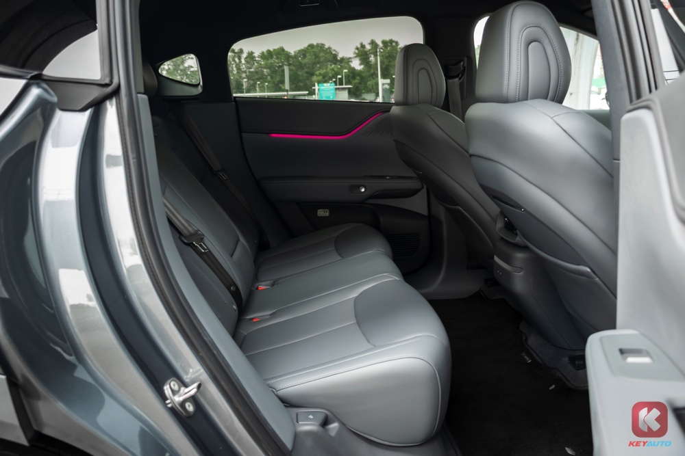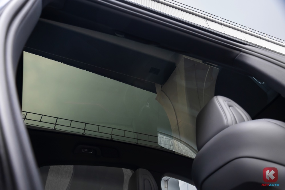 后座空间相当宽敞,对于 160cm 的记者来说,头部和腿部有相当大的空间,目测175cm 的高个子坐在里面,也有剩余的空间。至于头顶的全景式玻璃天窗,虽然已有隔热膜,但天气相当炎热的时候,偶尔还是能感受到头部传来微微的余热,只能将冷气温度调低,风量继续加大。
