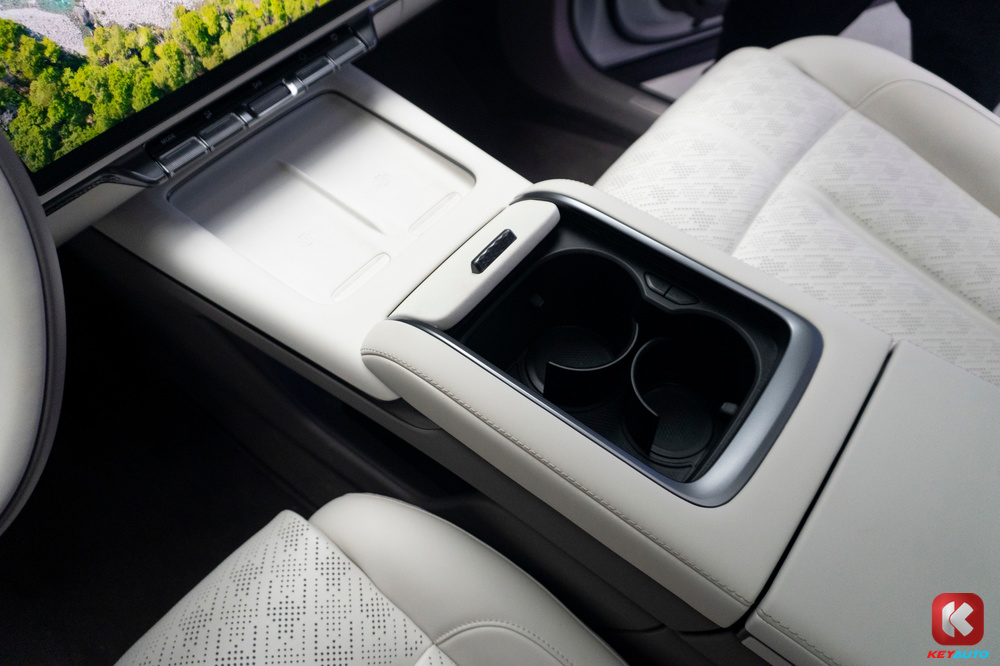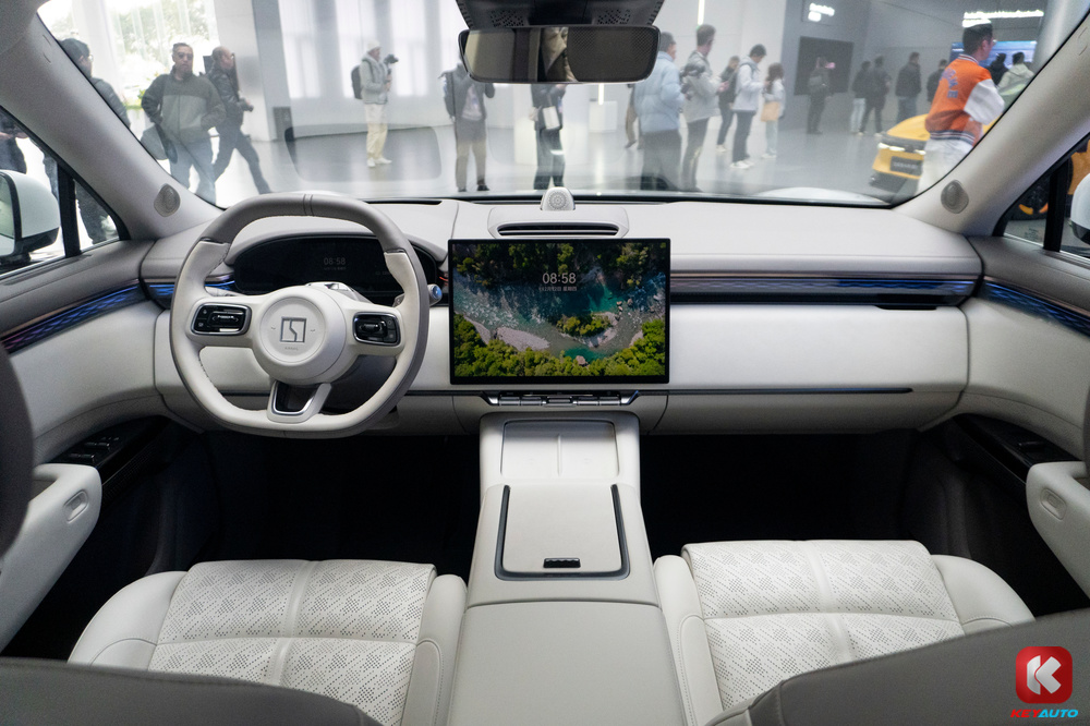 内装配有 13.02 寸仪表板和 16 寸中控荧幕(内建 Snapdragon 8295 芯片)。中控萤幕下方设有驾驶模式、尾门开关板、音量旋钮、自定义按键和手套箱开启实体按钮。其他功能包括AR HUD 抬头显示器、两个手机无线充电面板、21 具扬声器音响系统(配有头枕扬声器)、全景式玻璃天窗、电动遮阳板等。