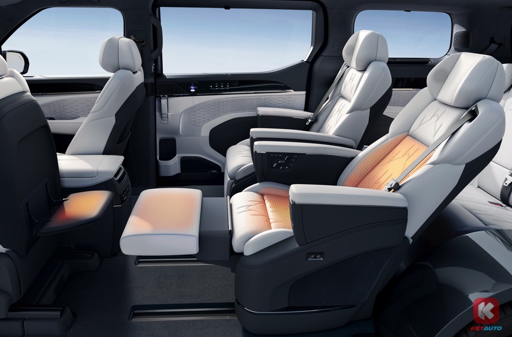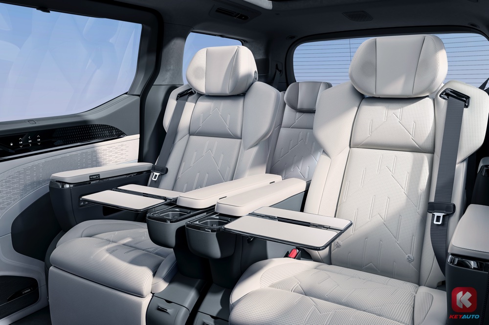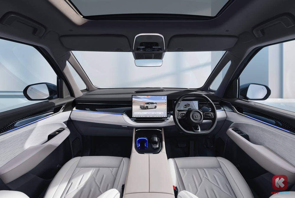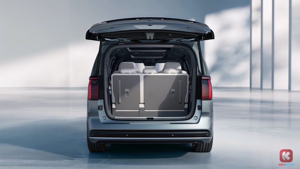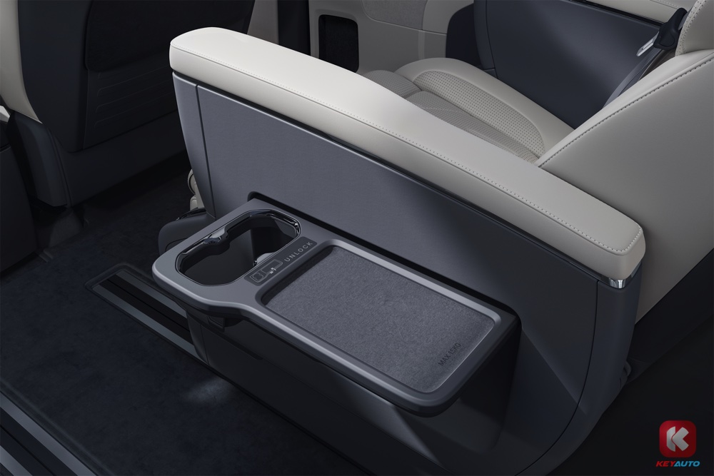 内装的部分,车子搭载 10.25 寸 高清 LCD 仪表板、15.05 寸 OLED 中控荧幕(支持无线 Apple CarPlay 和 Android Auto)、35.95 寸 HUD 抬头显示器、12 向记忆座椅电动调节、Yamaha 高级音响等。第二排设有 1.1m 的超长电动滑轨,并备有腿托、座椅通风和按摩功能;第三排则配备一键倾倒功能。