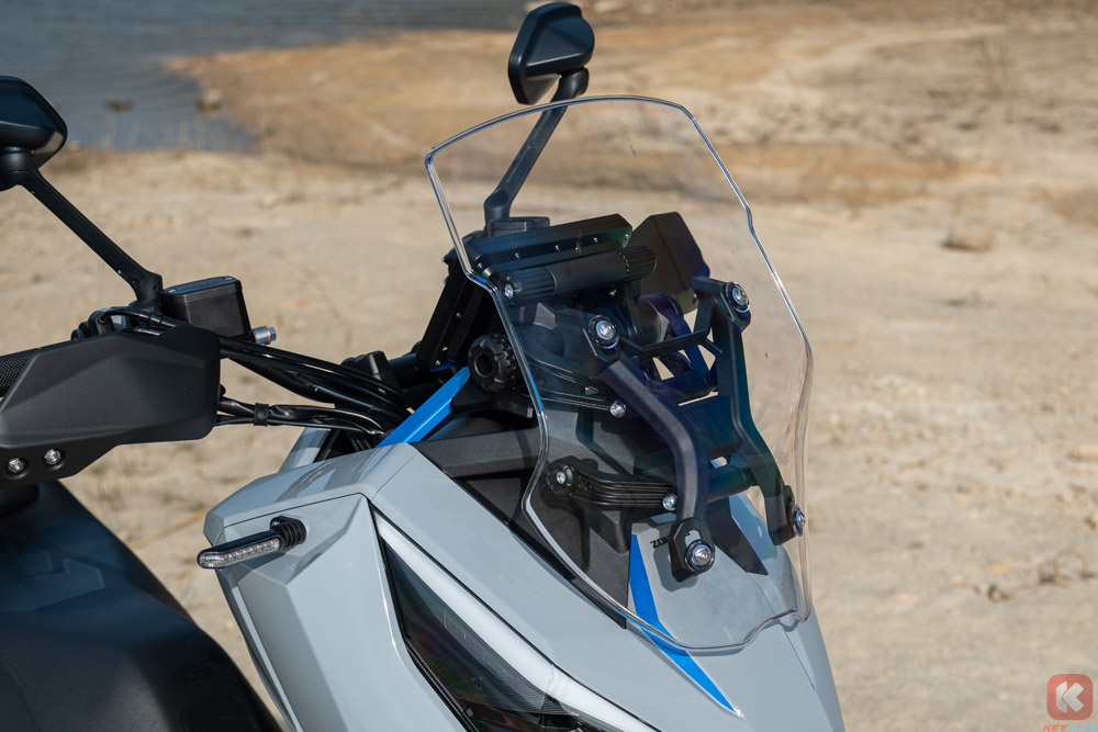除此之外,前挡风镜也可调角度,提高骑行舒适性。