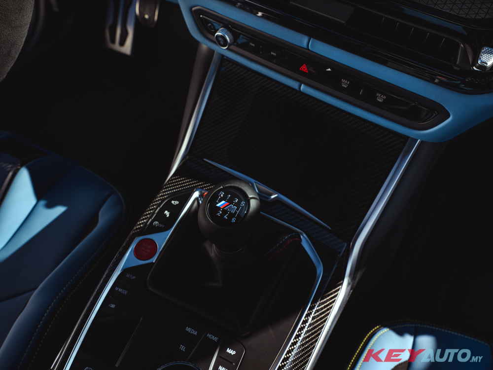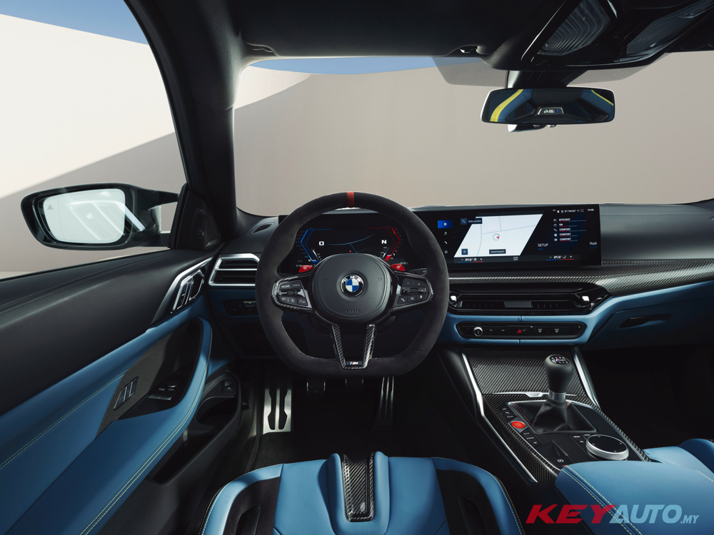 进入内装,新车获得一体式曲面荧幕,由 12.3 寸仪表盘和 14.9 寸中控荧幕组成,内建 BMW OS 8.5 系统,搭配新的平底方向盘和大量碳纤维饰板,增添战斗氛围。