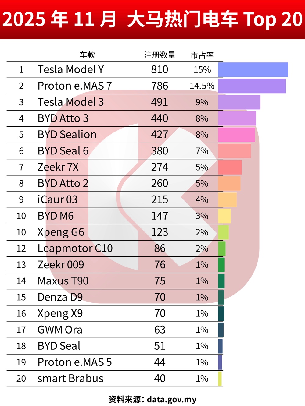 2025 年 11 月 – 大马热门电动车排行榜 Top 20