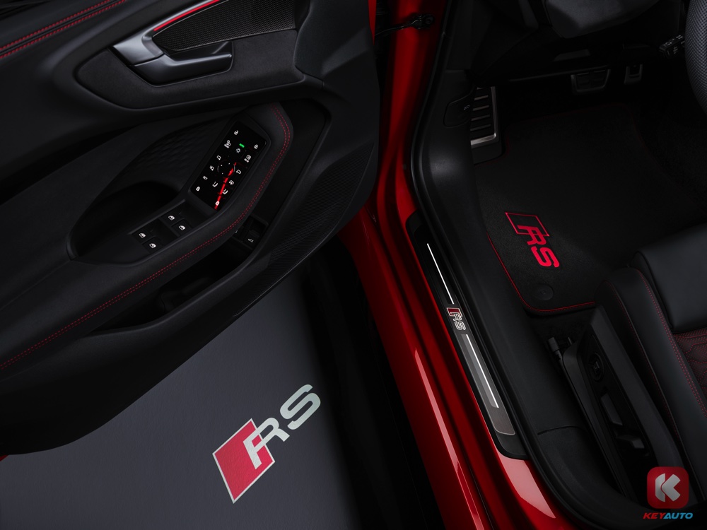 配上 8 速 Tiptronic 变速箱和带有后轴扭矩矢量分配功能的全新 quattro 全时四驱系统,可确保车轮在高负载(加速、煞车或转弯)时,提供足够的抓地力。车子也设有 RS 按钮,在激活加速功能之后可维持 10 秒,激发车子的最高性能。