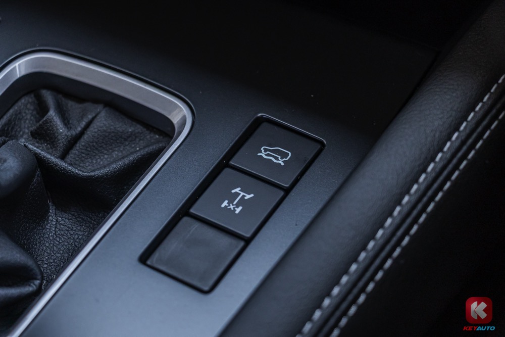 新车增加了越野模式(Rough Terrain mode),配有坡道缓降控制和四驱锁止功能,可应对多种路况。油箱容量达 76L,综合油耗为 7.76L/100km。