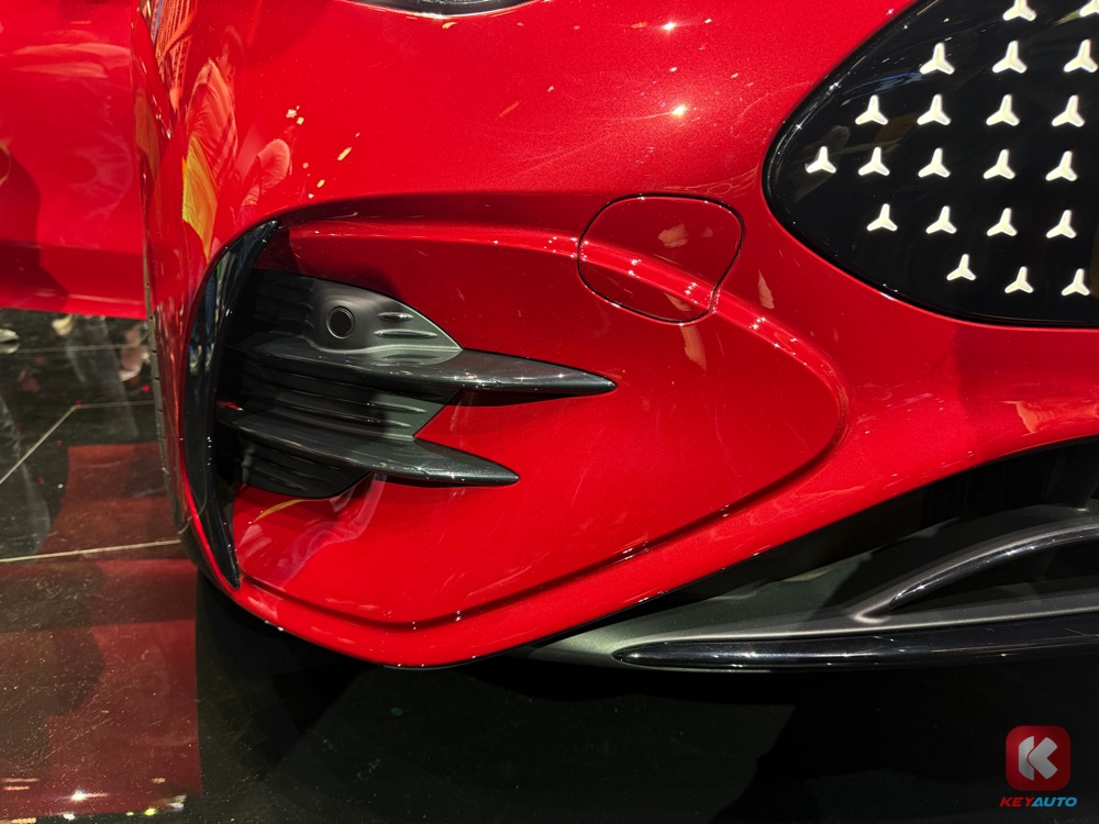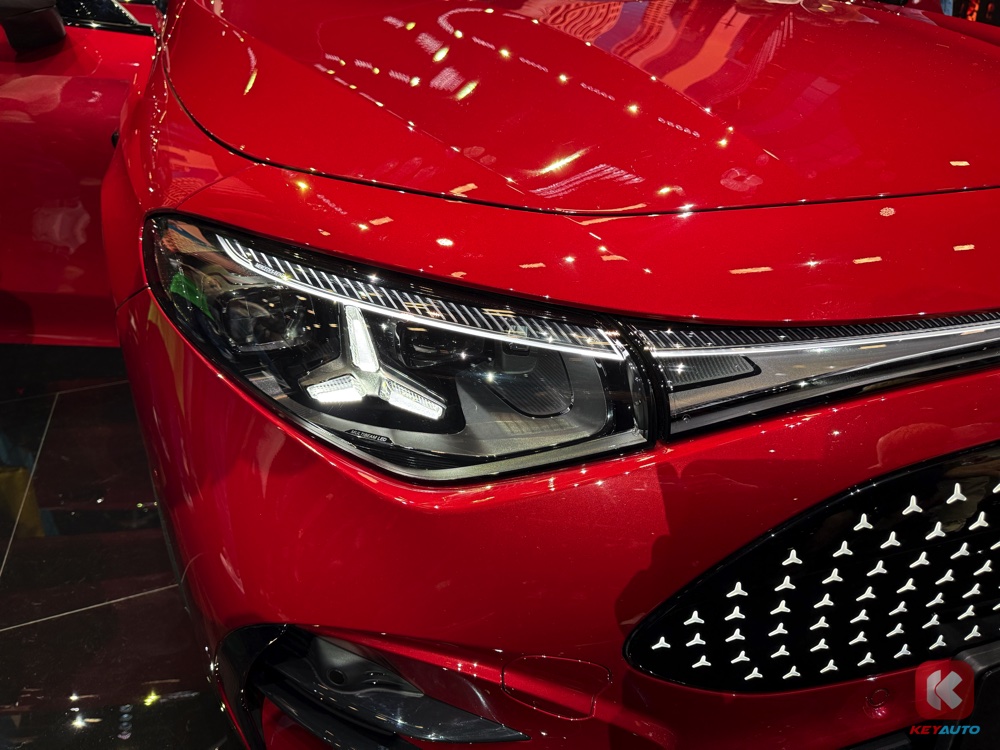 车子的前脸是大片星芒设计,配上发光的 三芒星厂徽,星光熠熠。上方是贯穿式 Multibeam LED 头灯,左右下册则是鱼鳍通风口。车尾换上全新设计尾灯,三芒星配上点状贯穿式设计,相当时尚。车身流畅的线条使风阻系数仅为 0.21Cd。