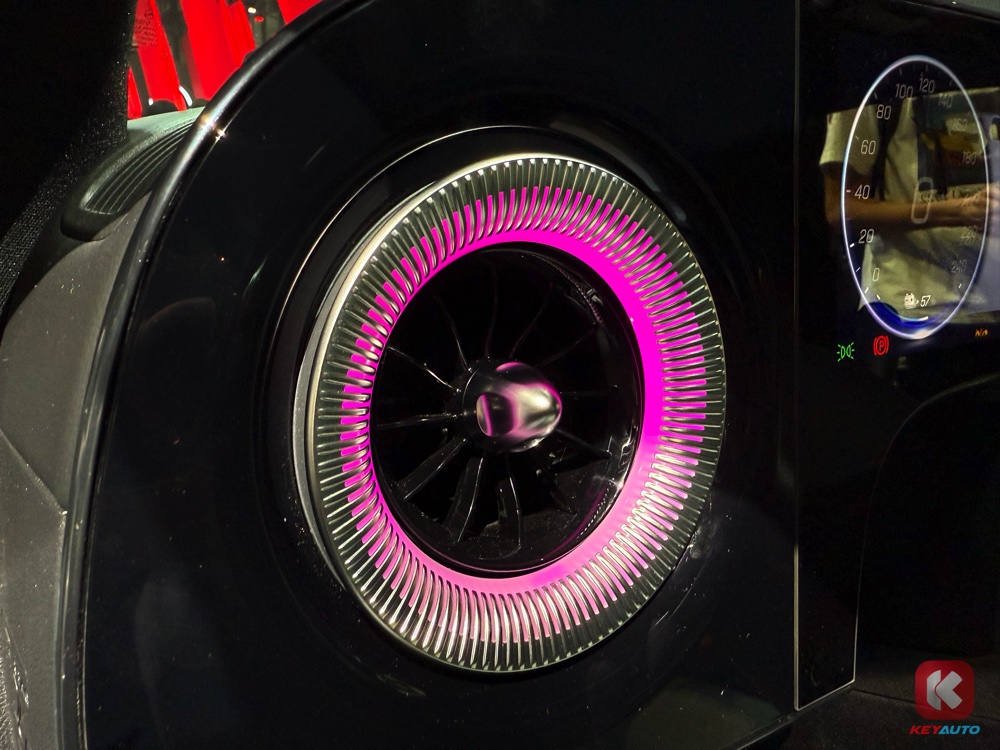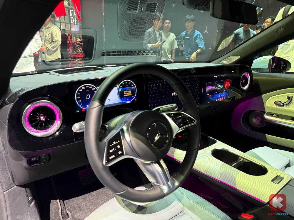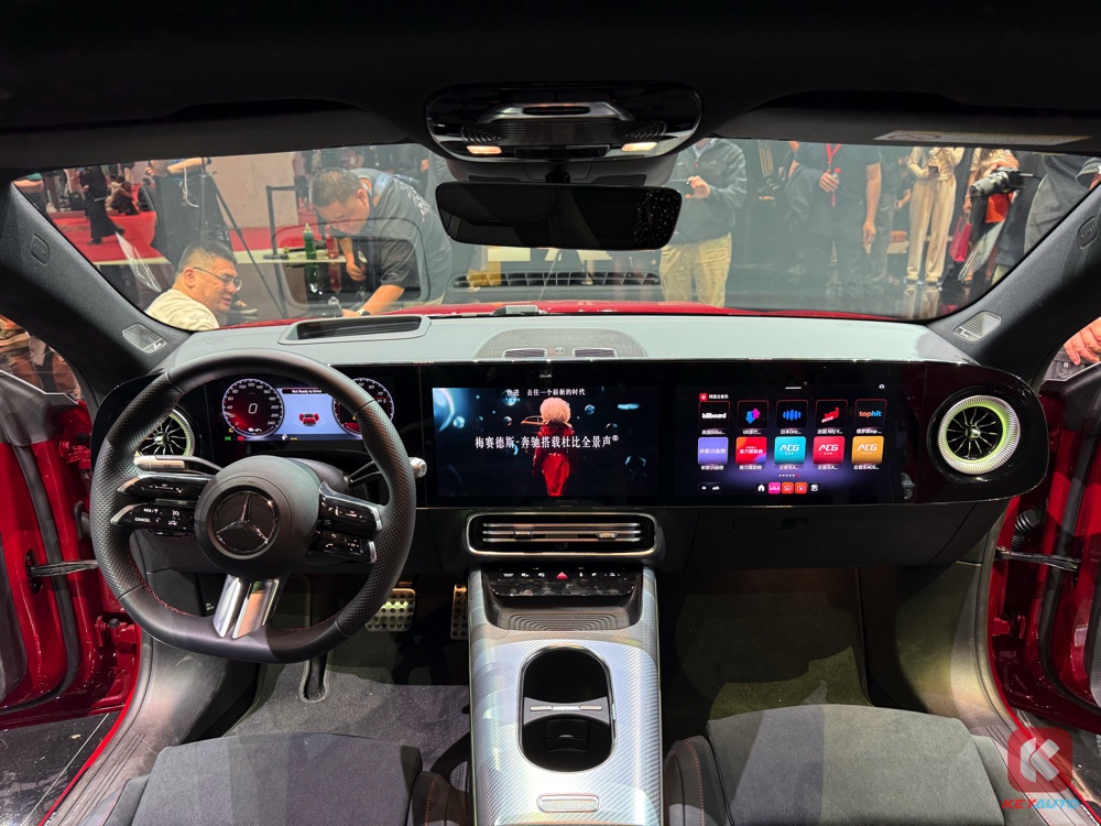 座舱换上新设计,搭载10.25 寸液晶仪表板、14.6 寸中控荧幕和 14 寸副驾娱乐荧幕,配上最新的 MB.OS车载系统,内置 Google Maps 导航和 AI 增强搜索功能。冷气出风口换上犹如音响喇叭的设计,配上 16 具扬声器 Burmester 环绕高级音响系统、12.2 寸 HUD 抬头显示器、全景式天窗等。