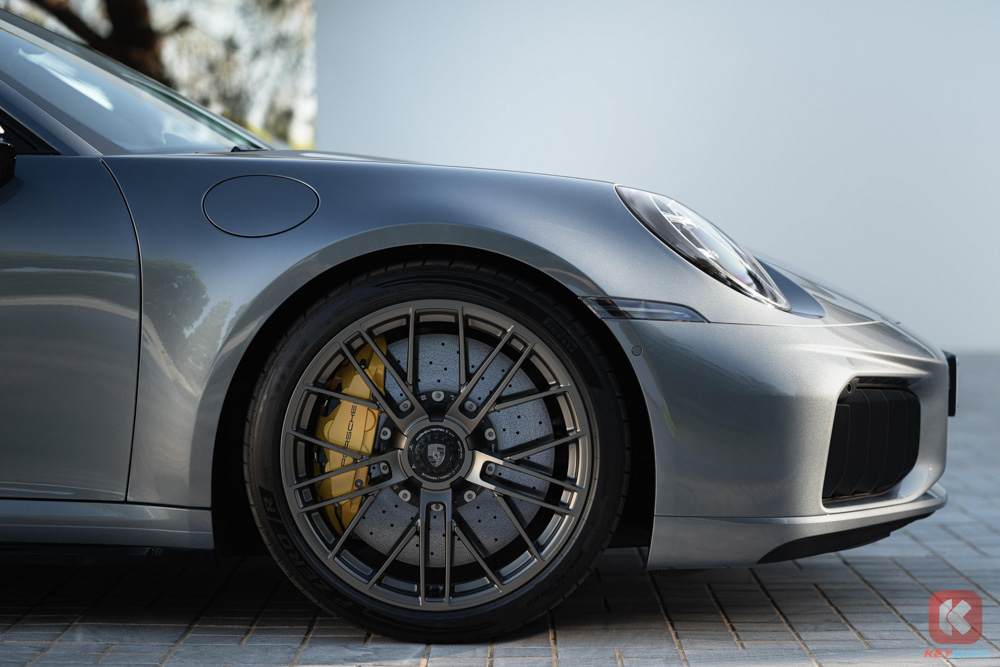 992.2 Turbo S 也配备了最新的 ehPDCC 电控防倾系统,能够在毫秒之间调整车身姿态。刹车系统升级为 前 420 mm、后 410 mm 的 PCCB 陶瓷刹车,堪称量产 911 中最大规格。轮胎配置也同步加宽,确保车辆在极限状态下仍能保持稳定。