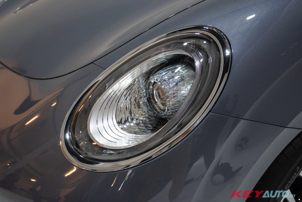 新车标配 LED 自动头灯组、19 寸轮圈、电动尾翼、无框车门设计等,共有三种车色可选择(Purple,Grey 和 White)。
