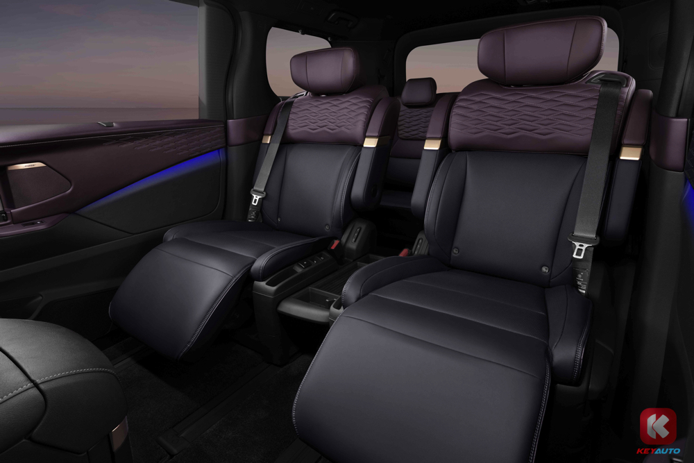 座舱散发着私人休息室般的氛围,第二排乘客将沉浸于零重力船长座椅的舒适之中,配备 TailorFit 真皮、木纹装饰、双 14.3 寸显示屏,还可选配的 Bose 高级音响(22 个扬声器)和 64 色氛围灯,营造出奢华的氛围。