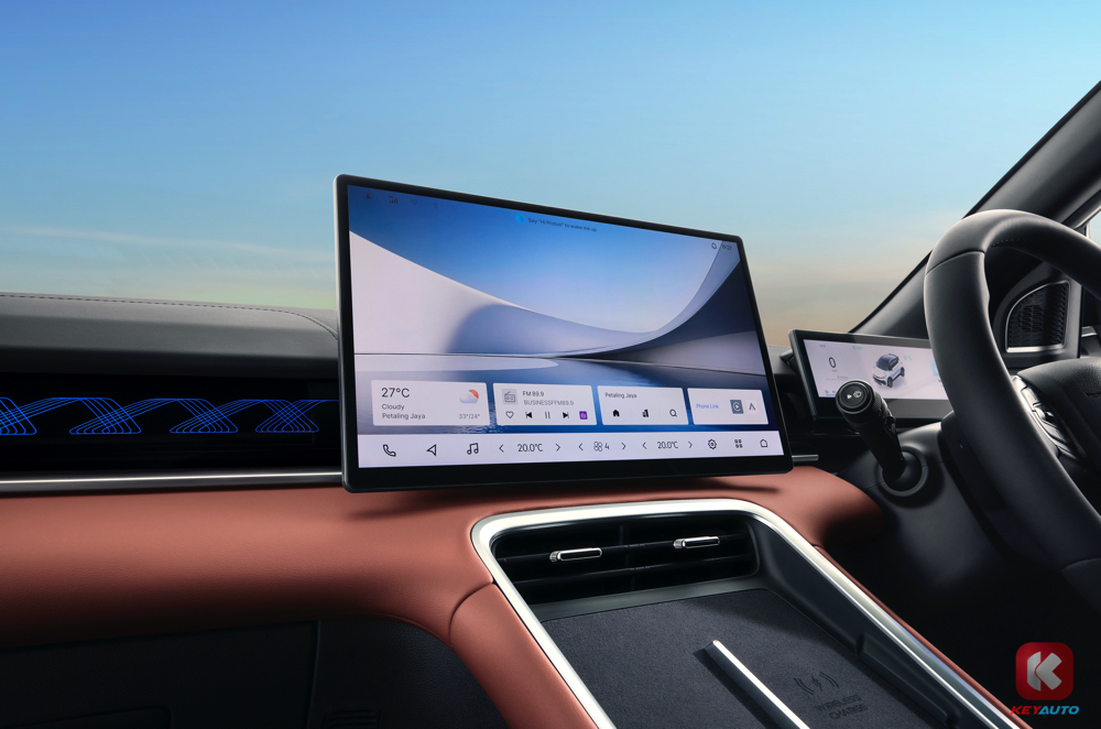全新 X50 延续了 e.MAS 7 的智能化座舱,采用简约设计风格,加入氛围灯点缀,删除了部分实体按键,排档杆则转移到方向盘后方,升级全新 14.6寸 中控屏幕,可支持 Apple CarPlay 和 Android Auto,并首次引入马来语语音识别控制功能。