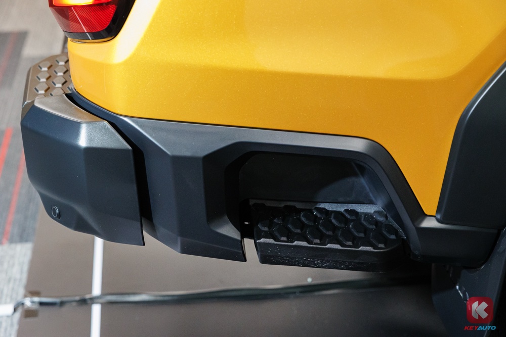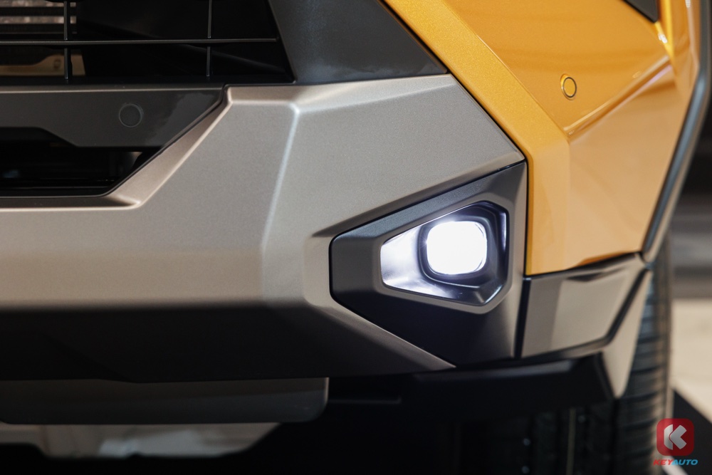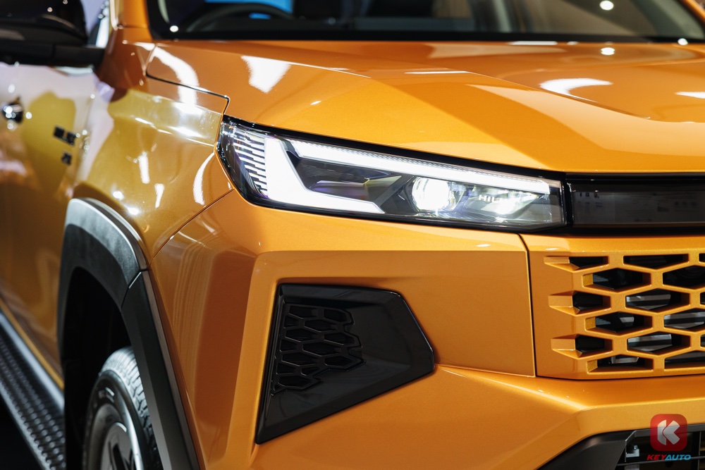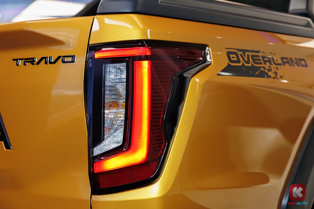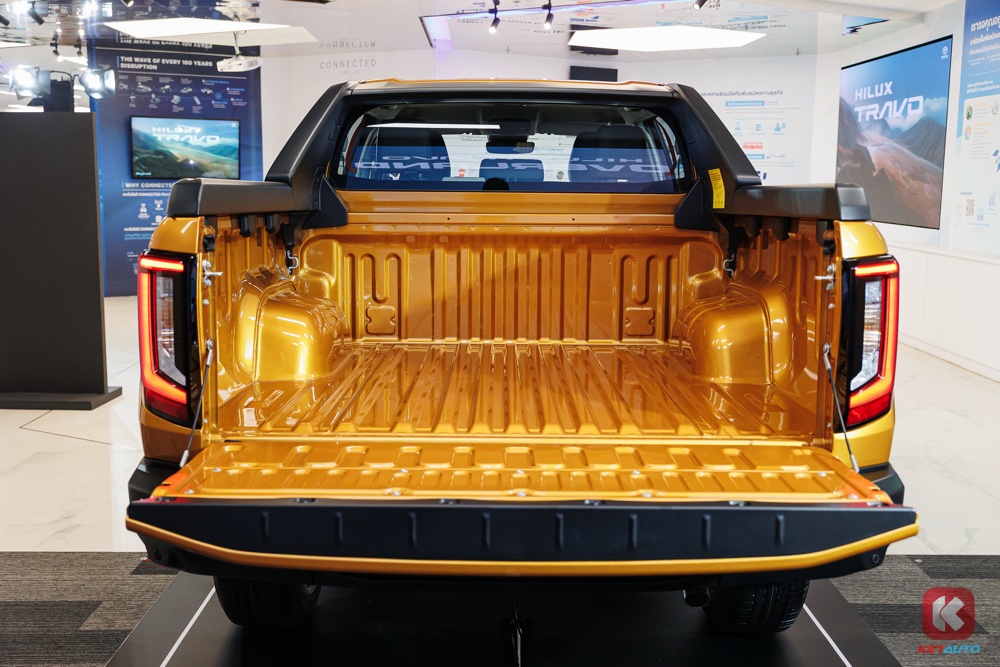 全新 Hilux 取名 “Travo” 其实是结合了 “Travel” 和 “Voyage” 二词,体现了运动、冒险和探索的本质。前脸采用全新设计语言 “Cyber Sumo”,整体变得更棱角分明、肌肉线条更明显。前脸是大尺寸蜂巢设计,配上巨大的 TOYOTA 字样,C 形的头灯和尾灯设计,车尾新增后斗踏板的踏板,侧踏板则采用蜂巢防滑设计。足下为 18 寸新轮圈。
