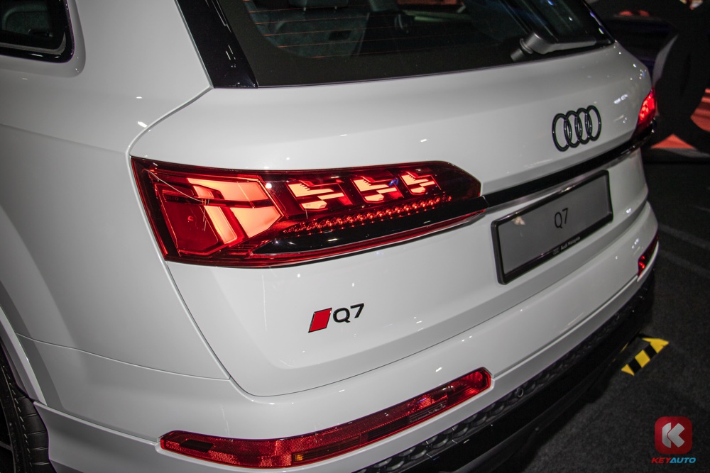 Audi Q7 S Line 是 Audi 首款在东南亚进行本地组装的SUV。车子标配 S Line 运动化外观与内装套件,包括 Black Styling Package Plus、22 寸Audi Sport 五幅星轮圈、车顶扰流板、炭灰色 Audi 厂徽章等、HD Matrix LED 头灯、OLED 尾灯等。