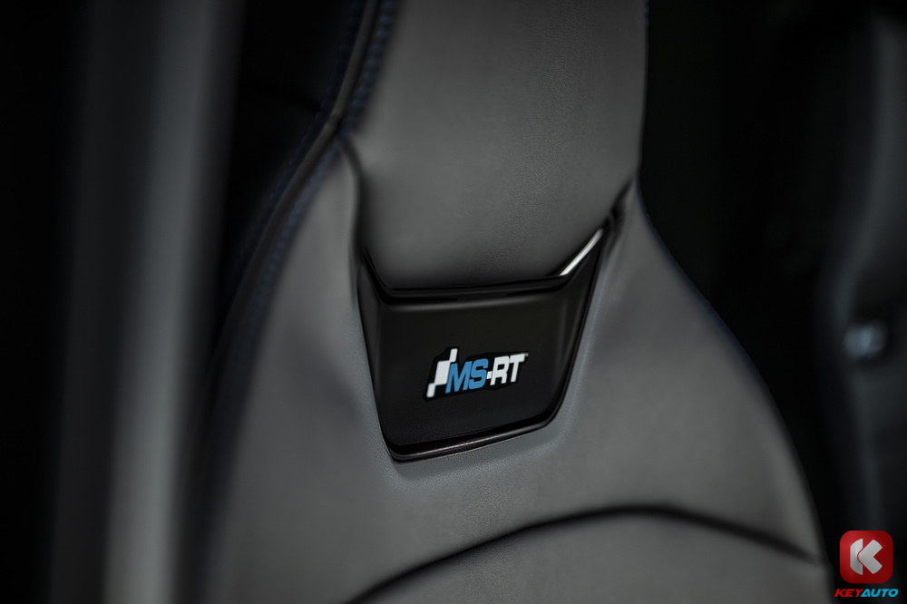 内装以黑色为主色,蓝色为缝线。前排换上 带有 MS-RT 标志的半桶形座椅,方向盘上亦加入了蓝色标记,后排座椅和地毯上皆有 MS-RT 标志。其他配备包括 12.4 寸 TFT 仪表板、12 寸中控萤幕(支持 Apple CarPlay 和 Android Auto)、双区恒温冷气系统、后座冷气出风口、手机无线充电面板、6 具扬声器音响等。