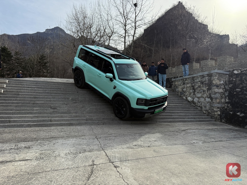 车子的接近角(车头从地面爬上斜坡的最大角度)和离去角(车尾离开斜坡回到平地的最大角度)的设计都相当出色,两个角度都顺利通过。