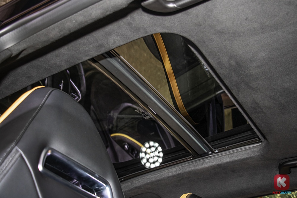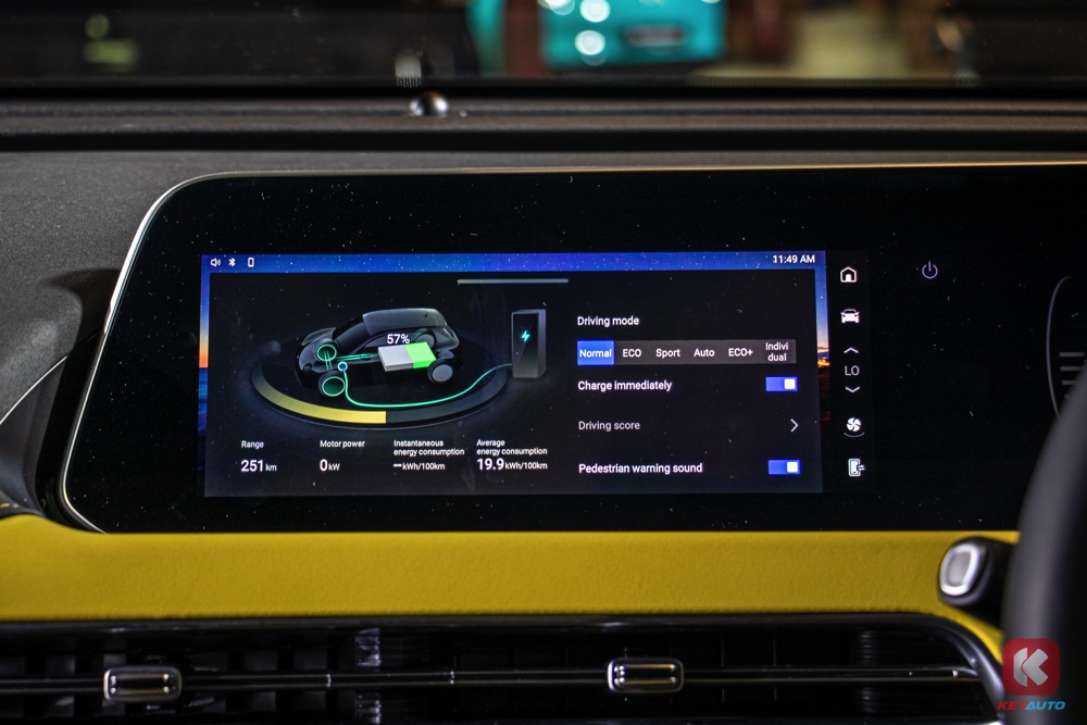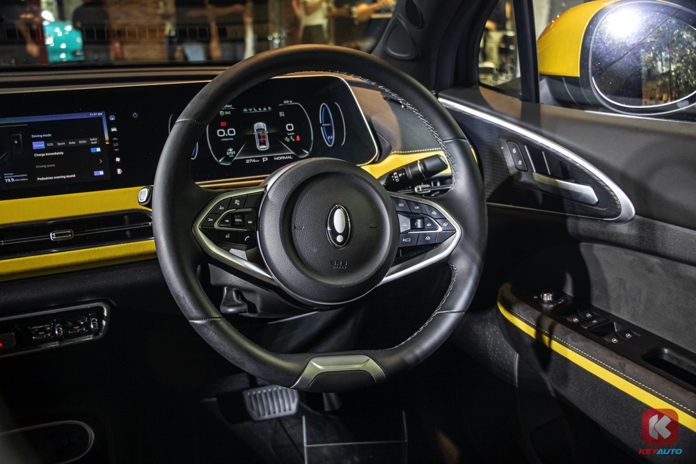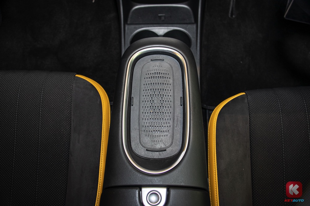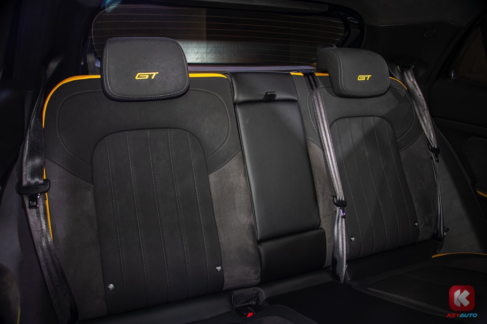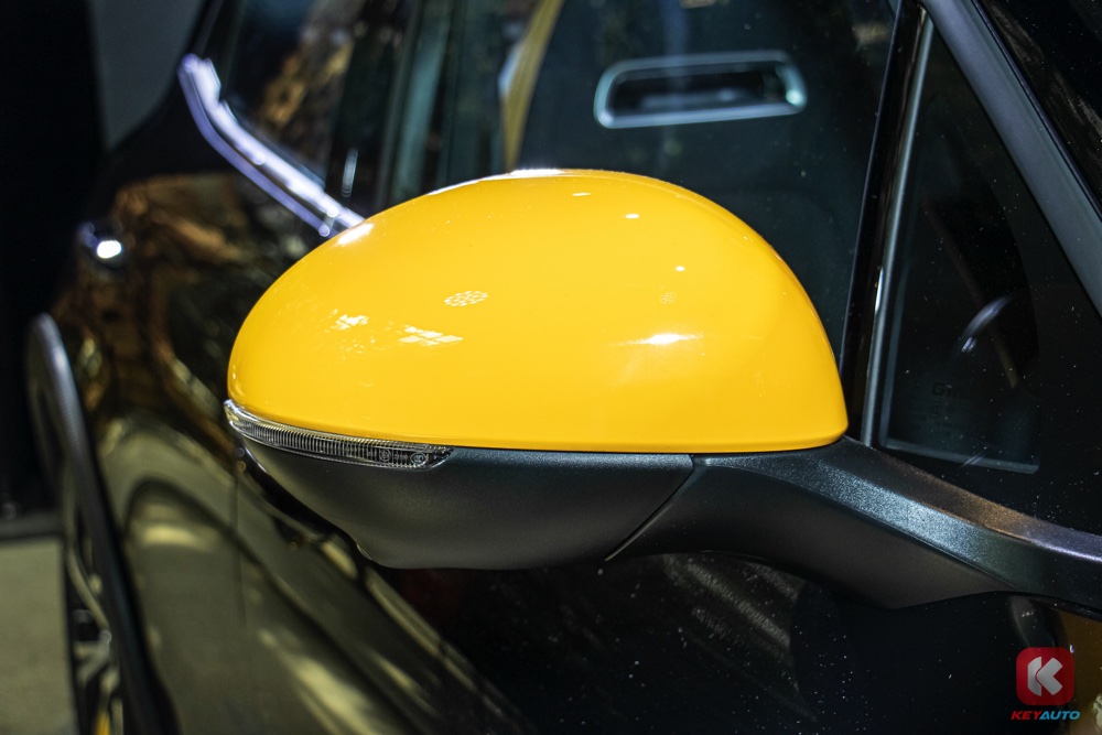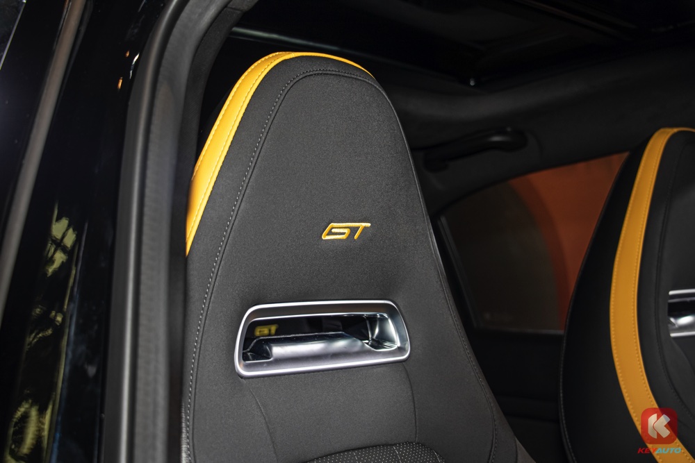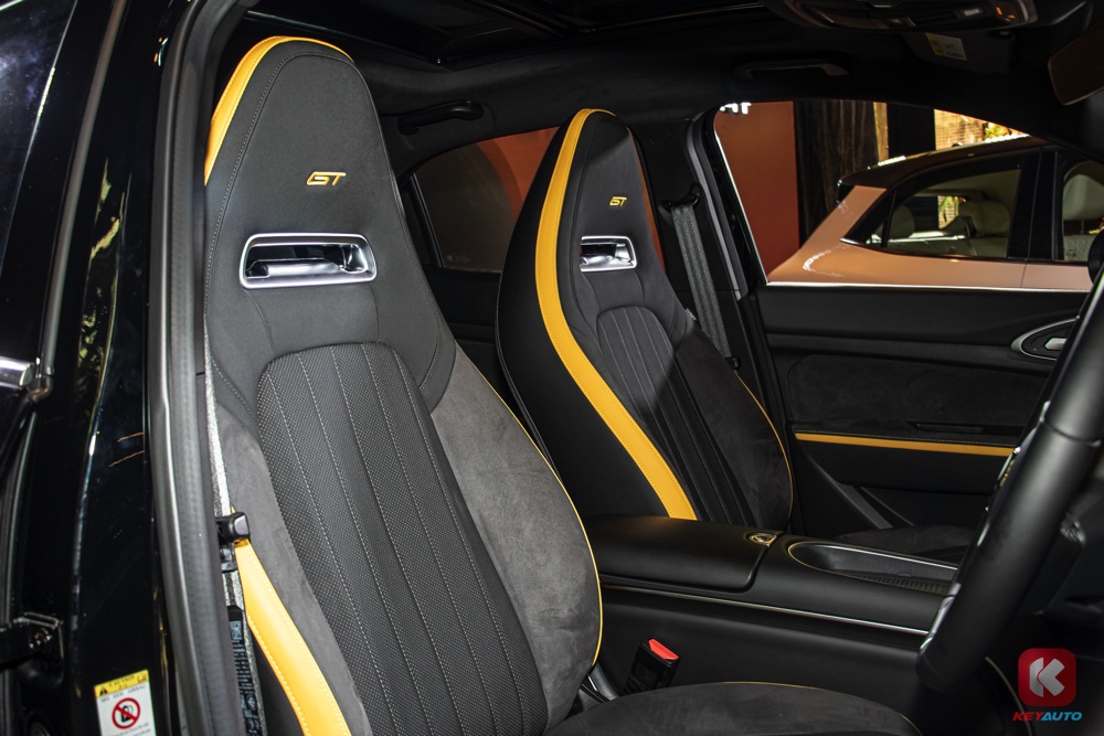 车内延续了外观的色调搭配,同样以黑色和黄色作为主色调。内装搭载 10.25 寸中控荧幕(支持 Android Auto 与 Apple CarPlay)、人造皮革运动化座椅、带记忆功能电动调节座椅、前排座椅按摩及通风功能、手机无线充电面板、电动尾门等。