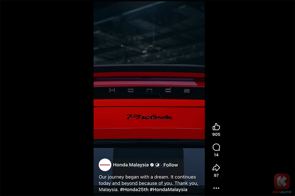 前不久才在 2025 日本移动展上看到 Honda 双门轿跑 Prelude 的实车,Honda Malaysia 就偷偷在他们的社交媒体账号上偷偷释出这款轿跑的身影,似乎是在预告着即将来到大马市场?