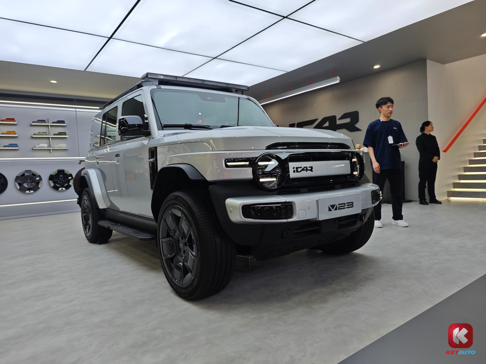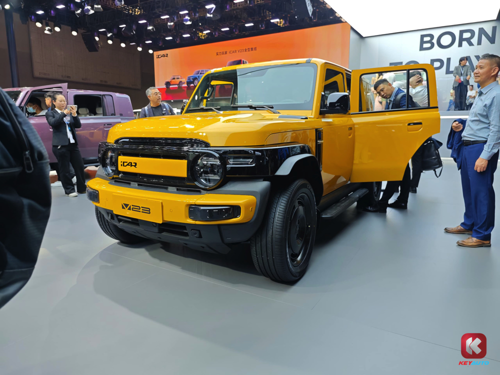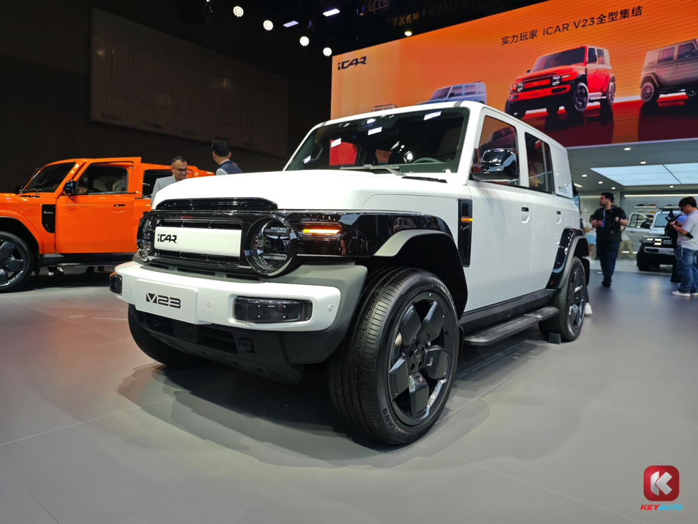 iCAUR 也在上海车展发布了首款全球车型 V23 纯电 SUV。基于i-MS 平台打造,车身尺寸 4,220mm X 1,915mm X 1,845mm,轴距 2,735mm。