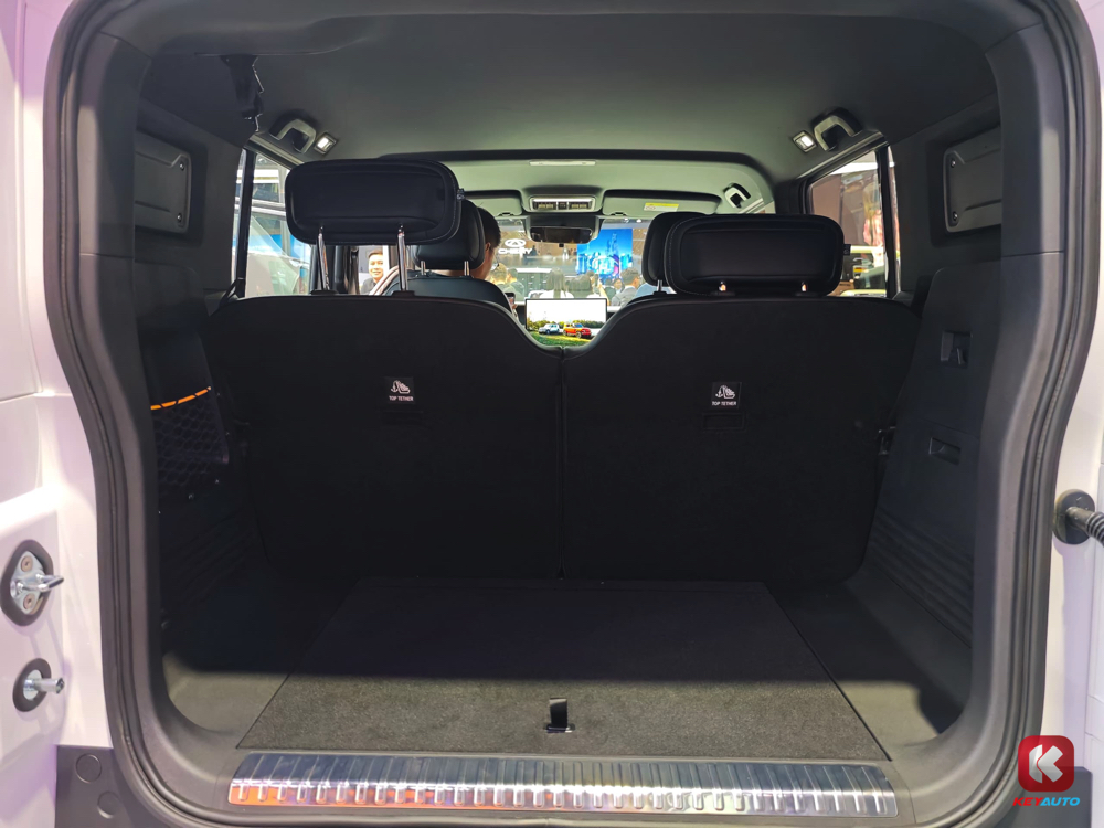 车子的外型采用复古风设计,方正的车身配圆形头灯,中央则是横向封闭式水箱护罩。下方是大尺寸梯形结构保险杆,配上黑色防刮板。尾门采用不规则设计,方形储物箱位于尾门右侧,两侧则是熏黑尾灯。