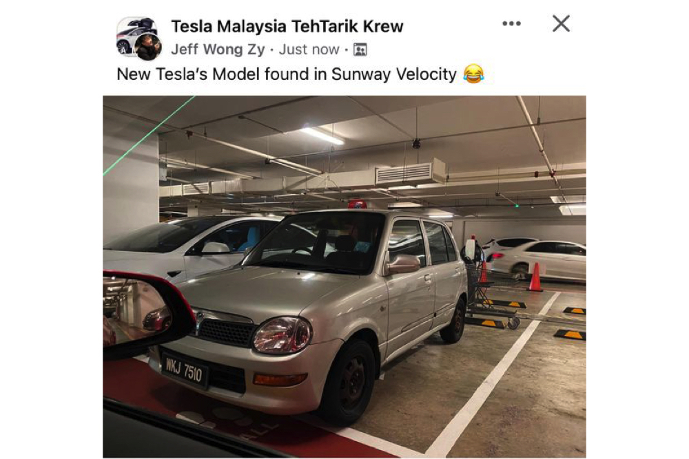 另外也有网民幽默发文写道,自己在 Sunway Velocity Mall 发现 Tesla 最新车型。Tesla Model K?