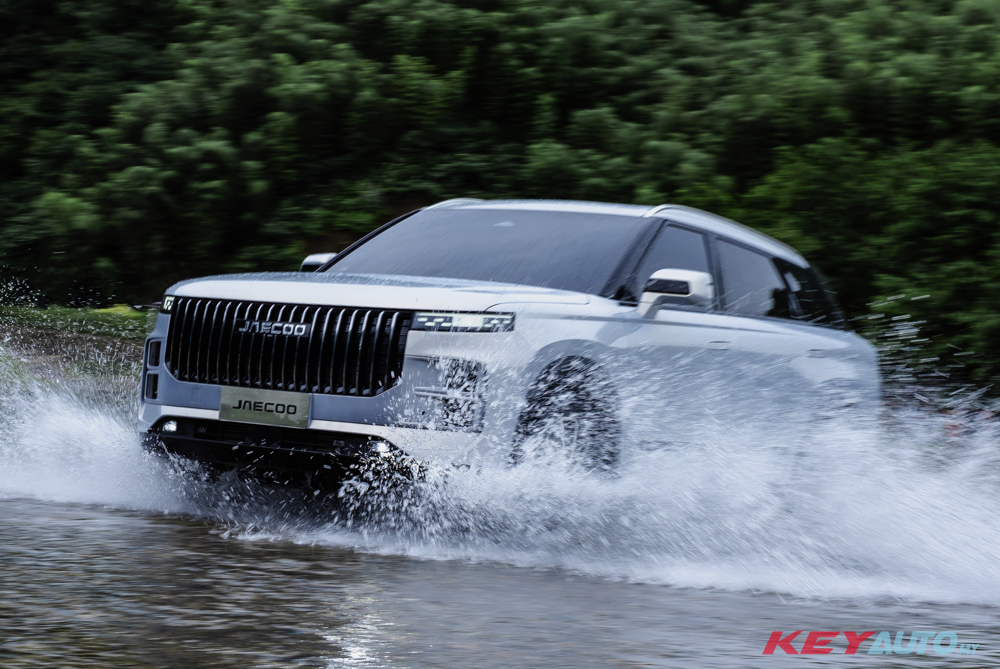 JAECOO J7 其实是一款车身尺寸与 Mazda CX-5 相近的 C-Segment SUV,拥有 200mm 离地间隙 ,涉水深度 600mm,接近角 21 度,离去角 29 度,最大拖拽能力为 1,300 kg。