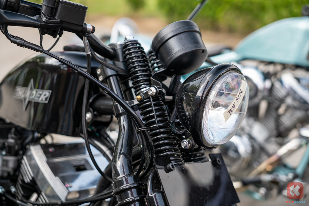 Thunder LS250-S 采用原厂即完成的 Bobber 设定,包含 Springer Fork 弹簧前叉、手工打造排气系统、定制车架结构、大尺寸后齿盘、辐条轮圈、Shinko 复古 Saw-Tooth 轮胎,以及 Peanut 油箱与单座设定等经典元素,整体风格强调复古比例与机械质感,无需额外改装即可直接上路。官方强调,LS250-S 是百分之百合法上路的 ’类改装‘ 摩托车。