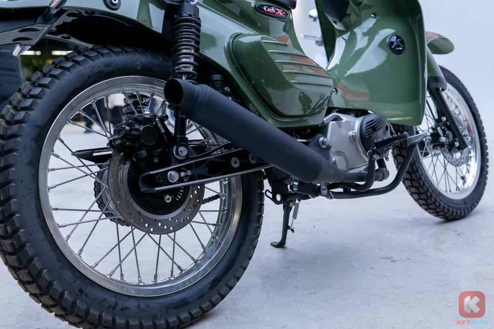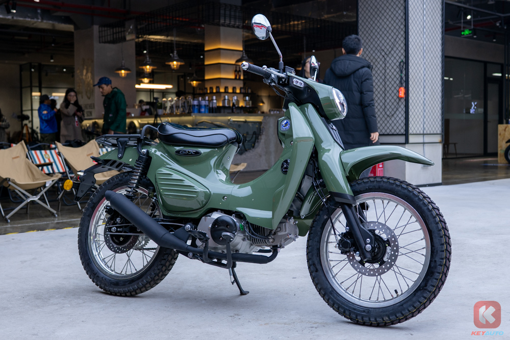 Cub X 是基于 Super Pro 125 改造而来,整体外形基调为近年来较为流行的复古跨界, 采用 LED 头灯及尾灯,17寸钢丝轮圈以及象征越野的 “菠萝” 轮胎。