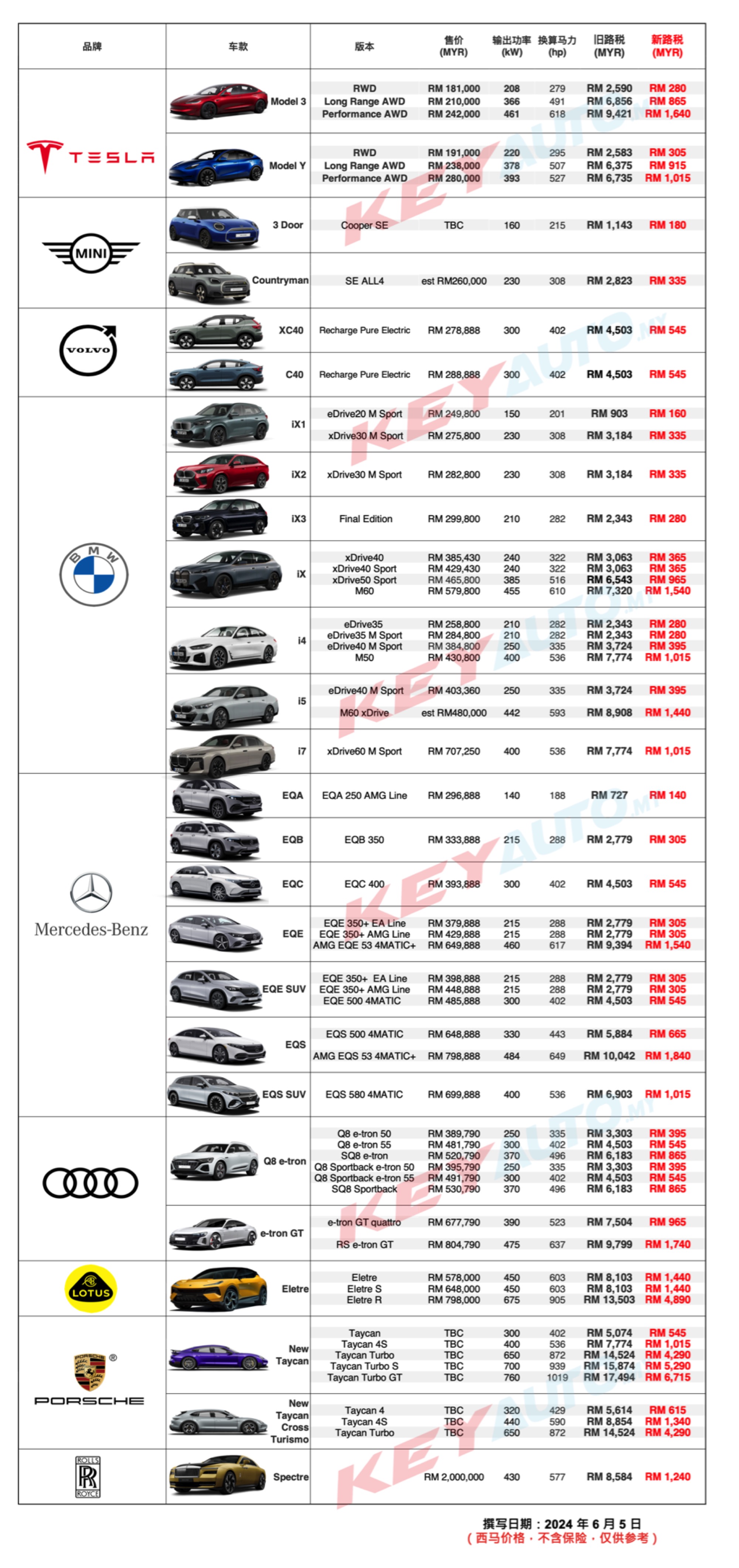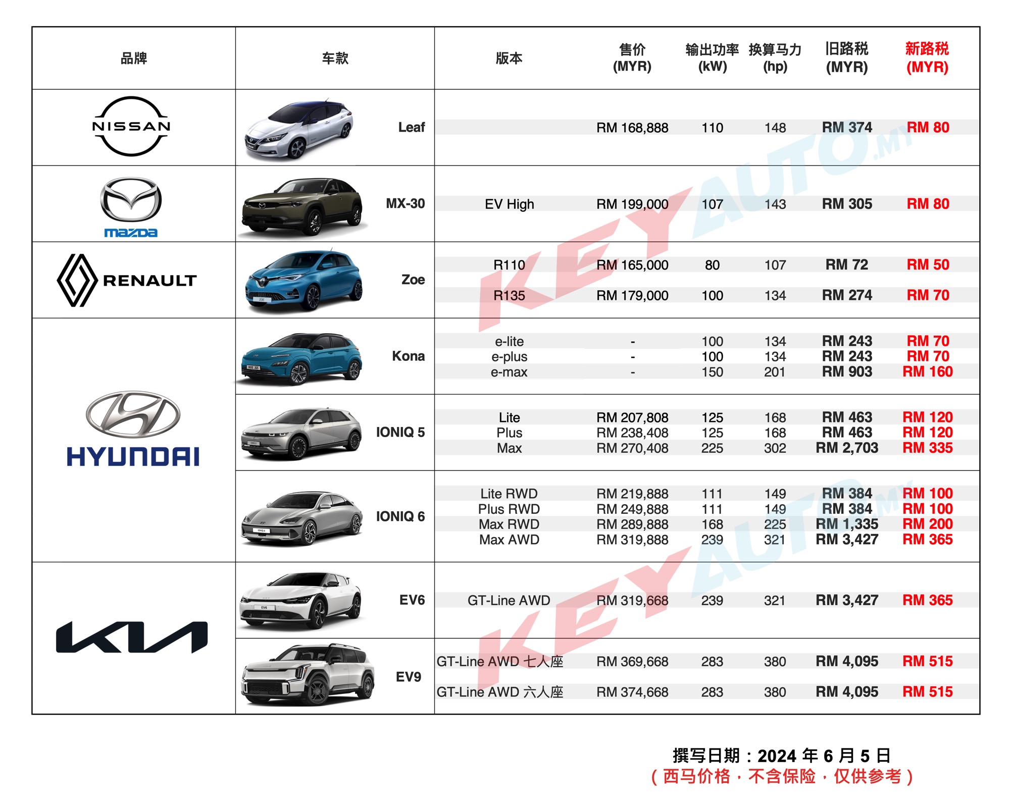 日前,大马交通部终于公布了最新的 EV 纯电动车路税架构,小编也特别为大家整理出大马市面上各个电动车的路税费用。