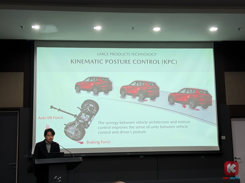 CX-60 配备运动姿态控制系统(KPC),增强操控精准度,其悬架可抵消抬升力,在煞车时可降低车身,实现平稳移动与过弯。