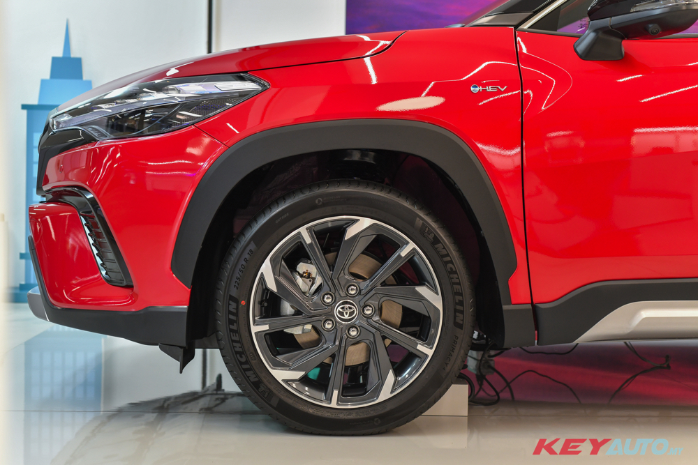 动力方面,Corolla Cross GR Sport 在泰国仅有 1.8L HEV 油电动力选择,搭载 1.8L 自然进气四缸引擎,与电动马达结合,综合最大马力 122hp,配上 e-CVT 变速箱,采用 FWD 前轮驱动设定。
