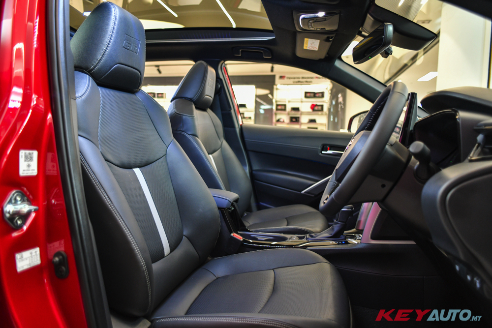 内装方面,采用黑色皮革座椅,头枕上印有 GR 标志,但没有红色缝线加持,其余部分则与普通版相同,配备全景天窗、12.3 寸全数位仪表盘、 10.1 寸中控荧幕、电动尾门、TSS 驾驶辅助系统等。