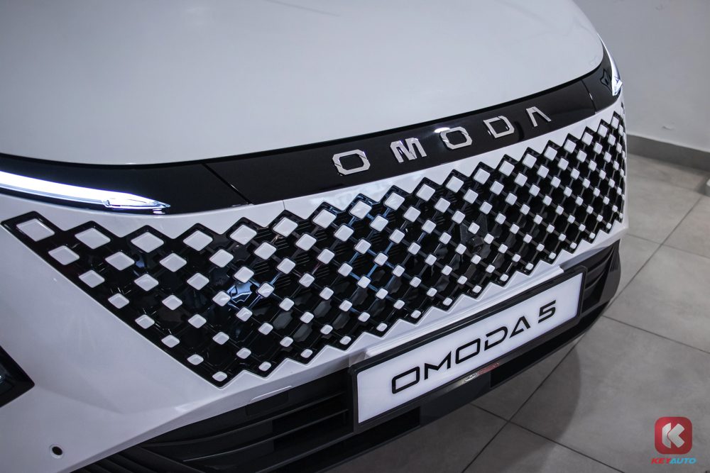 Chery O5 可被视为纯电动 E5 的燃油版,两者采用了更相似的外观设计,其中新款 O5 的前脸变化最大,采用布满方格的水箱格栅、新的 18 寸轮圈,也取消了 Chery 标志,改用 “OMODA” 字眼。