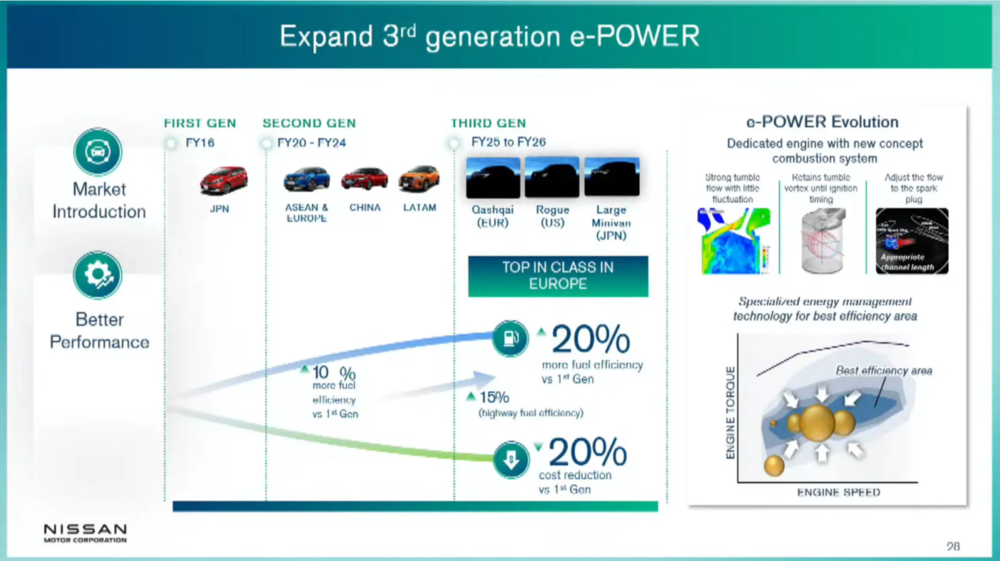 根据品牌展示的新车计划,Rogue (本地称 X-Trail)将以插电式混合动力(PHEV)车型面市,并且在 2026 年推出 Rogue e-Power(以下统一称为 X-Trail)。X-Trail PHEV 预计是 Mitsubishi Outlander PHEV 的兄弟车款,其外形相似度极高。而X-Traile-Power 剪影明显可见换上全新头灯组,将搭载 Nissan 第三代 e-Power 系统,官方称该系统比第一代 e-Power 效率要高 20%。