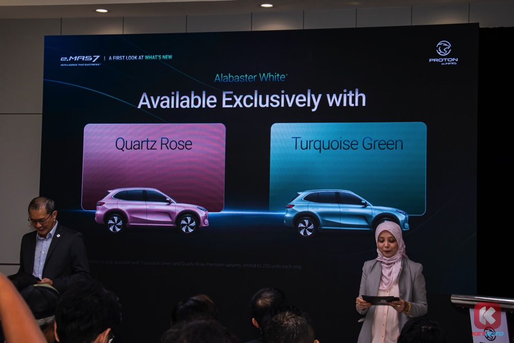 配合此次的功能焕新,Proton e.MAS 7 也在原有的 5 种车色种再添加一个车色,那就是曜石黑色(Obsidian Black),并且为原有的 Quartz Rose 和 Turquoise Green Premium 车型提供专属的 Alabaster White 内饰。每款限量 250 辆。
