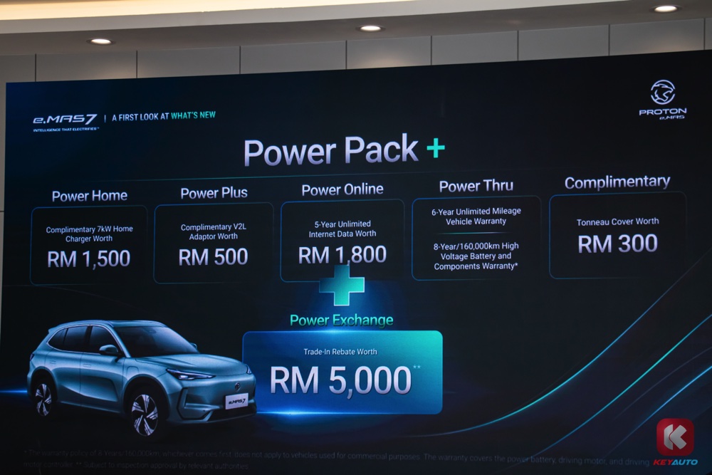 车子加料不加价,Proton e.MAS 7 的售价依旧是 Prime RM105,800,Premium RM119,800。原厂同步推出 “Power Pack”配套,包括: