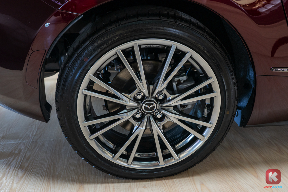 最新的 MX-5 35 周年纪念版在我国只提供 Artisan Red Premium 一种专属车色选择,采用硬顶敞篷,配上 17 寸深灰色轮圈,车尾和车侧翼子板上多了 “35th Anniversary Edition” 的专属名牌。