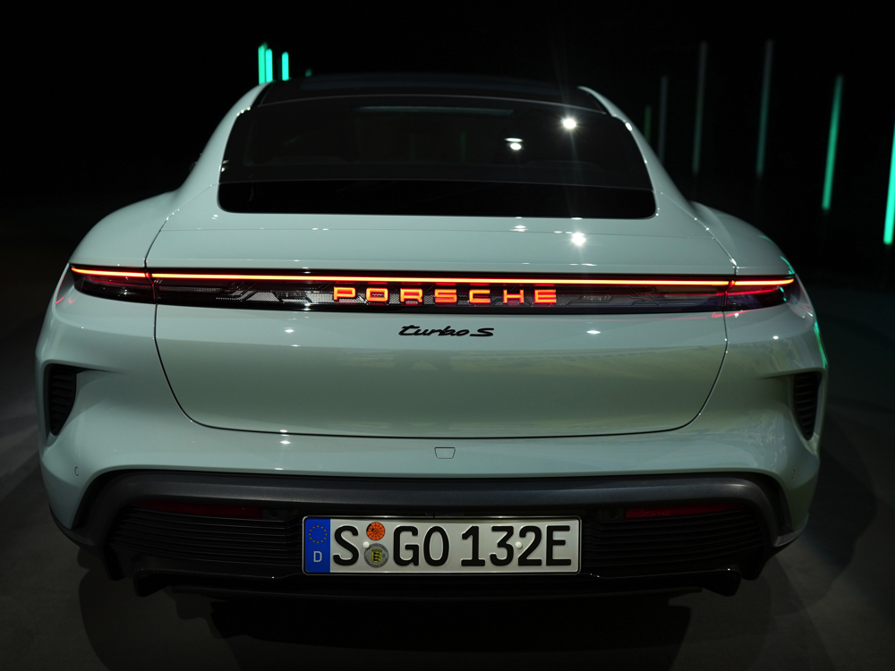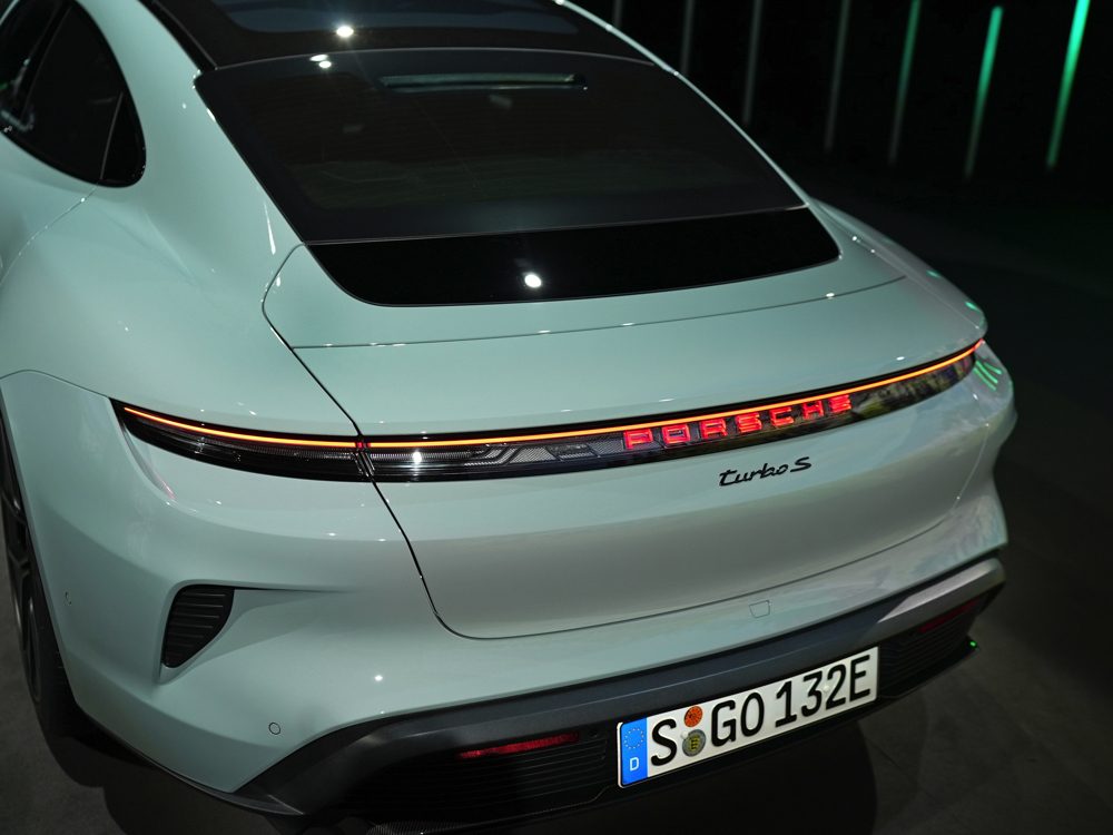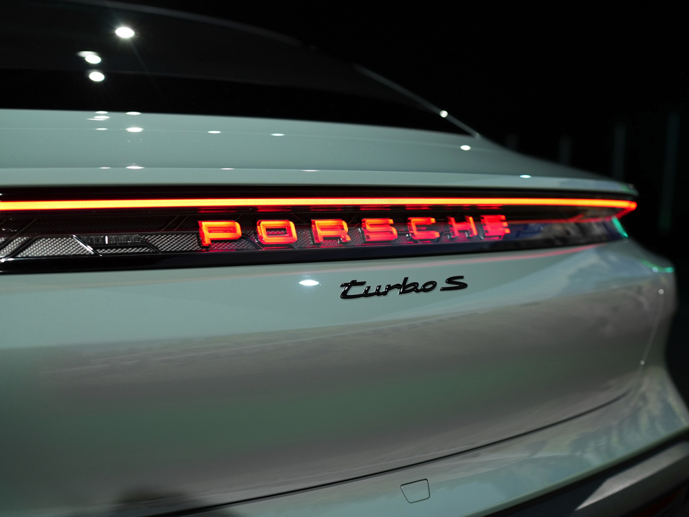 车尾光条中的 Porsche Logo 具有立体、透明造型,客户首度可选配具有迎宾/离车动画的发光版本。