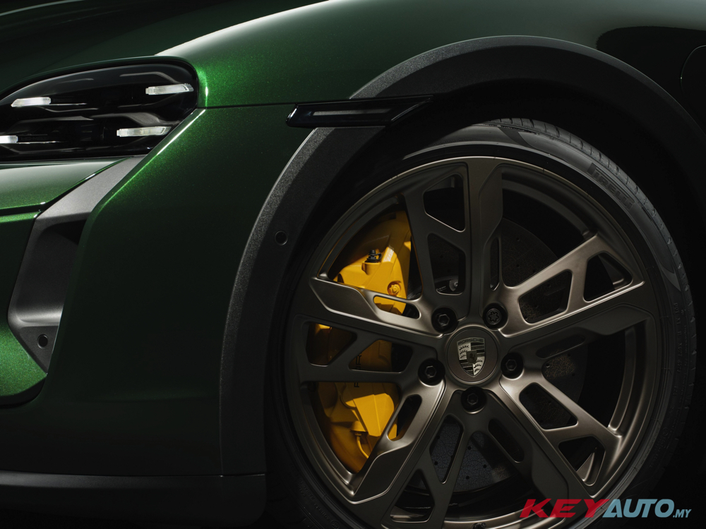 Taycan 标配强化空气力学设计的轮圈,以及低滚动阻力的轮胎。全新 21 吋轮圈与轮胎亦是为提升效率而研发,官方称新轮圈最高可提升 40km 的续航里程。