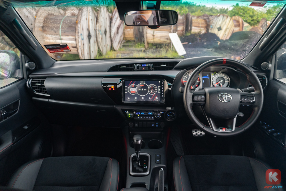 Toyota 在在安全层面绝对是不遑多让的,Hilux Rogue 2.8L 是目前本地少数配备完整 ADAS 的皮卡车型之一,搭载 Toyota Safety Sense。系统包含预碰撞警示、自动紧急刹车、车道偏离警示与动态雷达定速巡航。这些功能在高速公路与长途驾驶时尤为实用,能有效降低驾驶疲劳,也提升整体行车安全。对经常跨州或夜间行驶的用户来说,这样的安全配置已不再是加分项,而是必要条件。