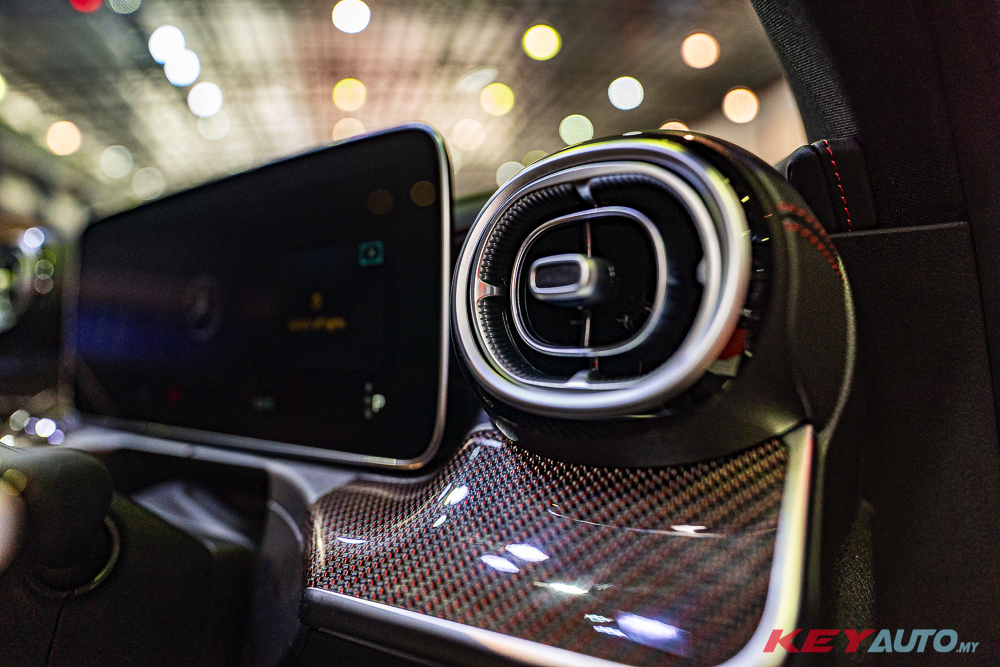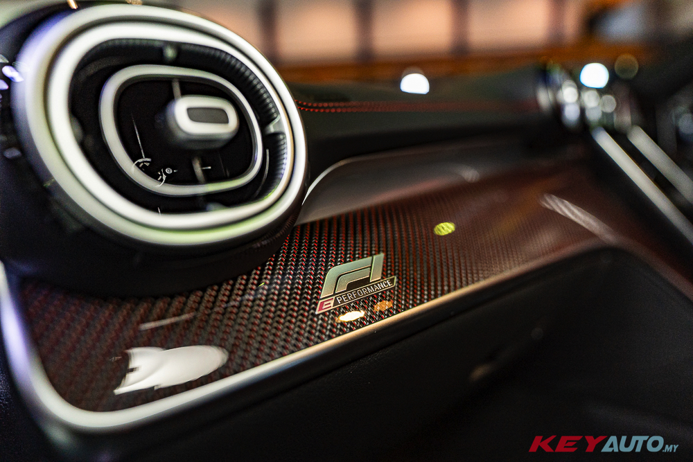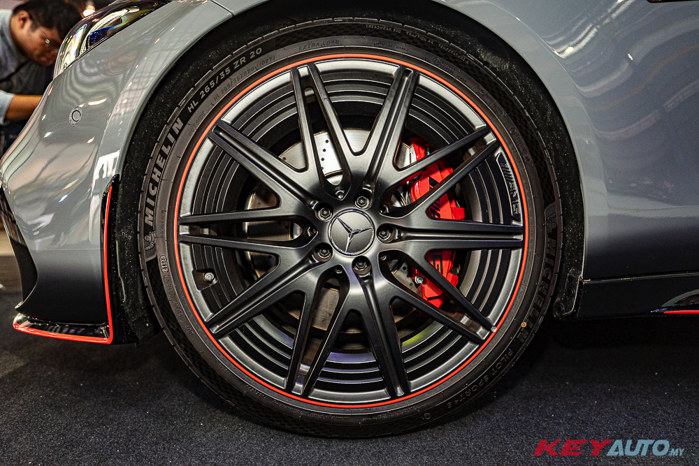 此次展出的 AMG C63 S E Performance 是特别版 F1 Edition,获得专属渐层式车身涂装,搭配红色线条点缀,车内还有碳纤维装饰。