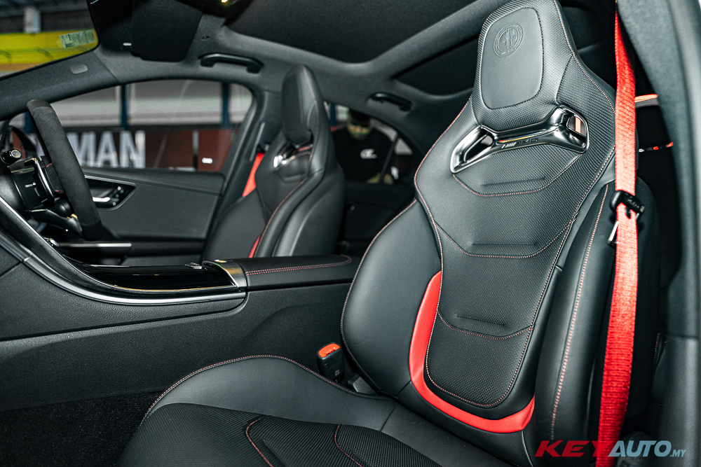 进入内装,同样配备 12.3 寸数位仪表盘和 11.9 寸中控荧幕,并且加入 AMG 运动元素,包括 AMG 运动座椅、AMG 平底方向盘、运动踏板和红色缝线。