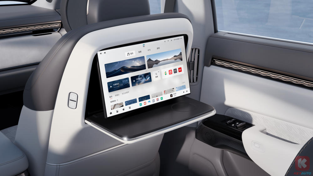 内装配有 16 寸中控荧幕、隐藏式冷气出风口、36.21 寸 AR-HUD 抬头显示器、可调节后座、后座通风和按摩功能、电动遮阳帘、全景式天窗、右后座老板位 13 寸  OLED 娱乐荧幕等。