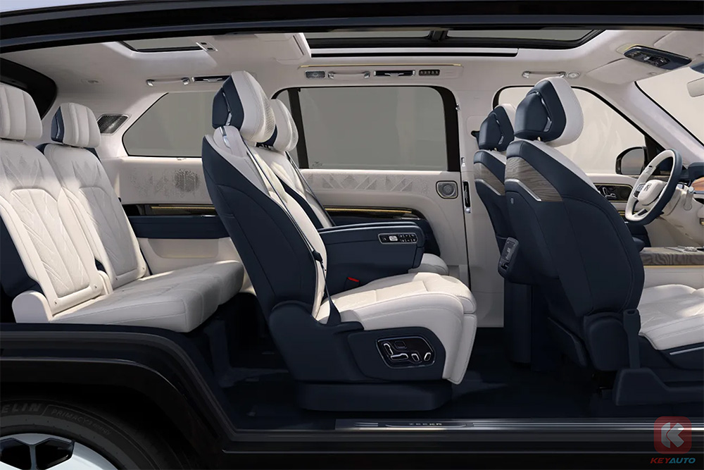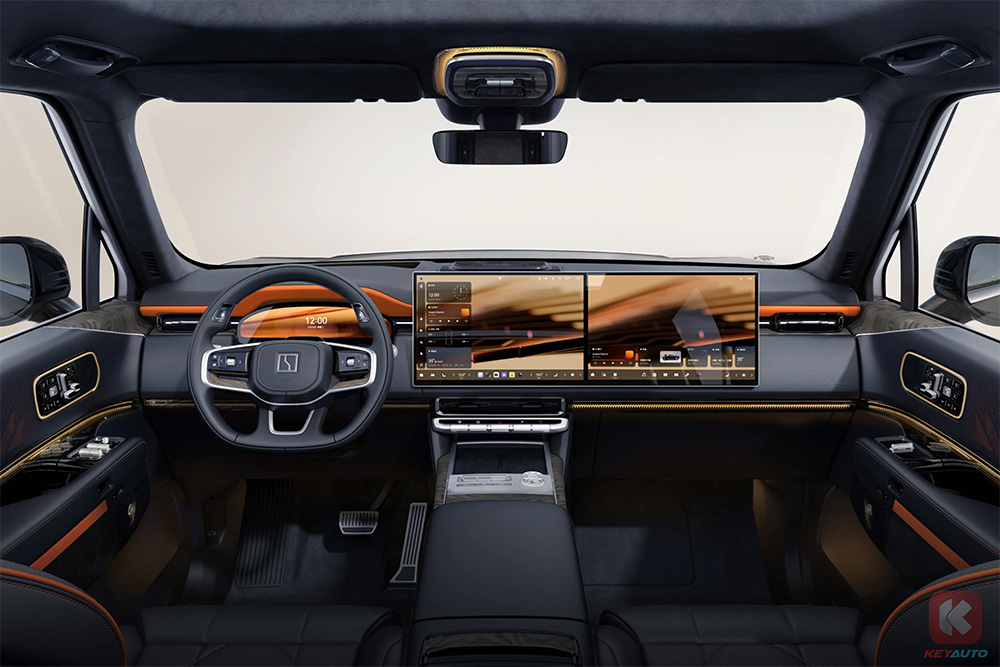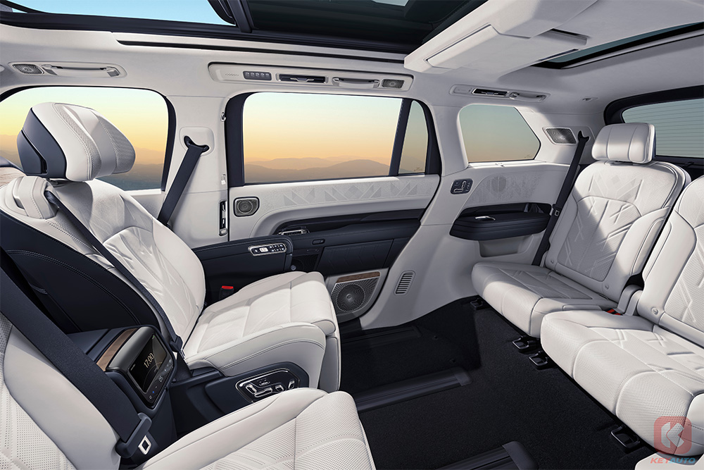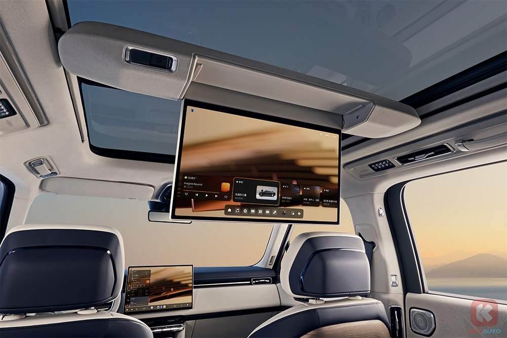 Zeekr 9X 也是一款 3 排 6 座位的大型 SUV,中排座椅还可切换面向、让中排和尾排面对面。当然了,作为一台旗舰级车型,车内配置也会是顶级的,搭载如 16 寸 3.5K OLED 中控荧幕、47 寸 AR-HUD 抬头显示器、Nappa 零重力座椅、3868W 功率 32扬声器 Naim 音响系统、车载冰箱等等顶级配置。