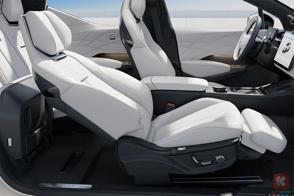 本次小改款 Zeekr X 也加入 4 座版本,前副驾驶座位拥有一键躺平放松功能,后座则是两张独立座位,提供更为豪华的乘坐体验。