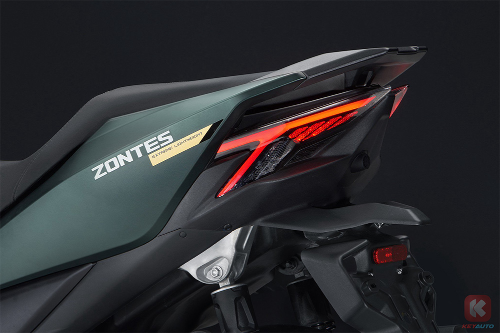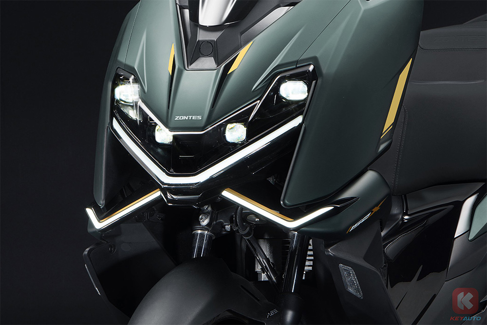 外观设计一直是 Zontes 的设计强项,150X 外观也也呈现出较为凶悍的造型,前脸配备四颗 LED Projector 和呈现出 ‘X’ 字形的日间行车灯,尾部同样也为 LED 灯组。整车高度也较为低矮,呈现出低趴的姿势,同样可降低车身重心。