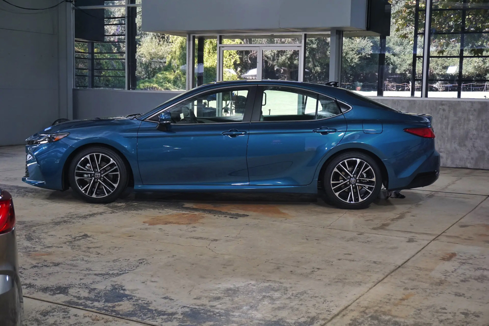 车侧依旧是大家熟悉的 Camry 身躯,拥有鲜明的肌肉线条,车尾拥有 C 字形的尾灯组和微微上翘的鸭尾设计。