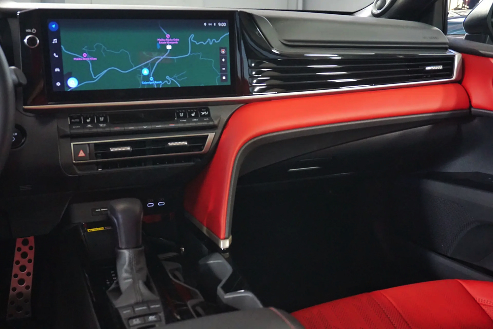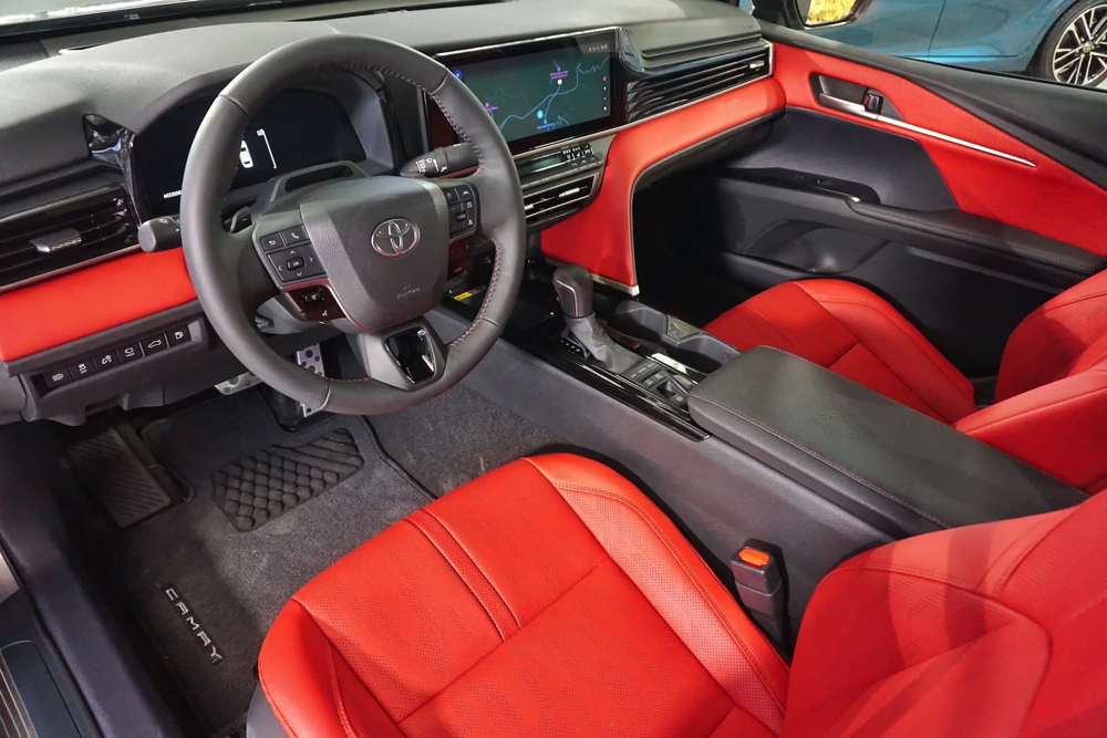 这次 Camry 在美国拥有 2 种设计风格,一种是运动风格,配备蜂窝网格、19 寸运动轮圈、黑色车顶、黑化套件、双边四出排气尾管、黑红色内装等;另一种是精致风格,采用横幅饰条设计、18 寸轮圈、黑白双色内装等。